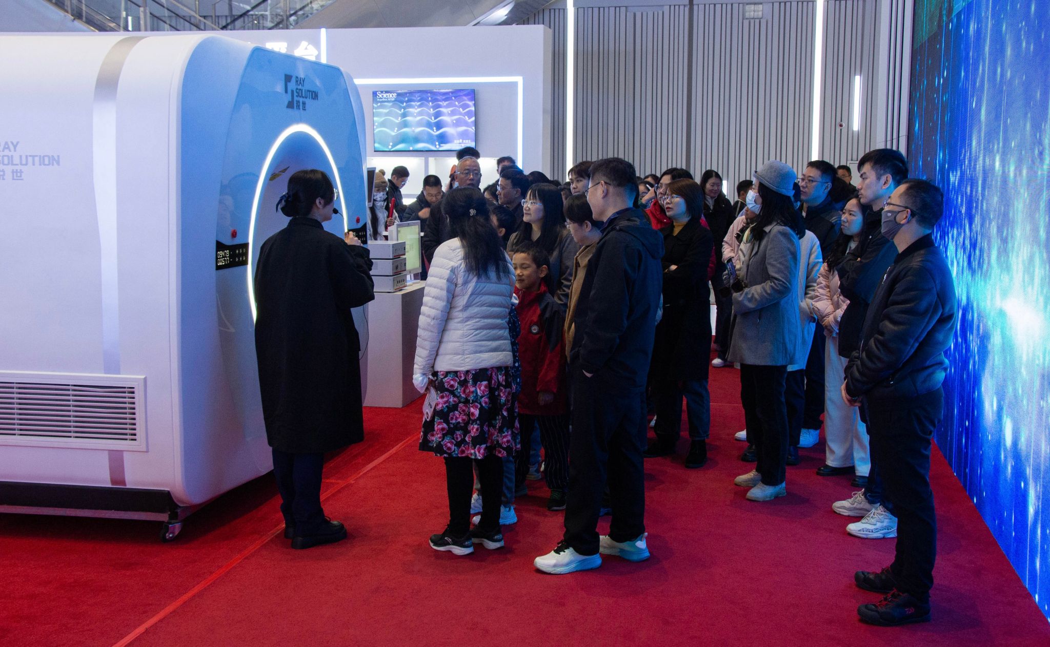 在讲解员的带领下,学院师生参观并了解了“创引擎、创智慧、创未来”三个主题创新成果展示区,近距离观看了稳态强磁场大科学装置、量子信息等科技创新产品,体验了互动能量墙、全息技术环幕等前沿科技设备装置,了解了安徽在科技研发和成果转化上取得的成绩。一件件科技创新成果让师生们大饱眼福的同时感受到了我国科技发展之迅速,生动诠释了安徽创新发展的基因、创新发展的动力、创新发展的成果和创新发展的未来,师生们切身体会科技的魅力以及成果应用改变生产生活的震撼。