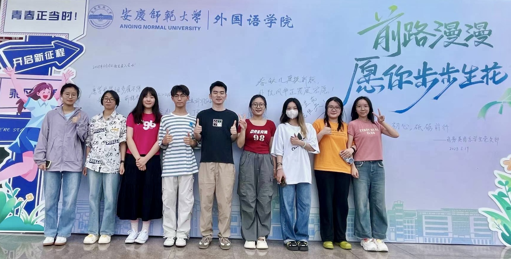 分会场气氛庄重而热烈,毕业生代表线上线下同步参与主会场盛况及学位授予仪式。仪式结束后,“青春纪念墙”前人头攒动,“不忘初心,砥砺前行”“前程似锦,未来可期”“离别总是匆忙又深情”……字里行间满载着对母校的感恩与对未来的憧憬。学子们驻足、书写、合影,让这面墙成为青春记忆的永恒载体,也彰显了外语学子沟通世界的志向。