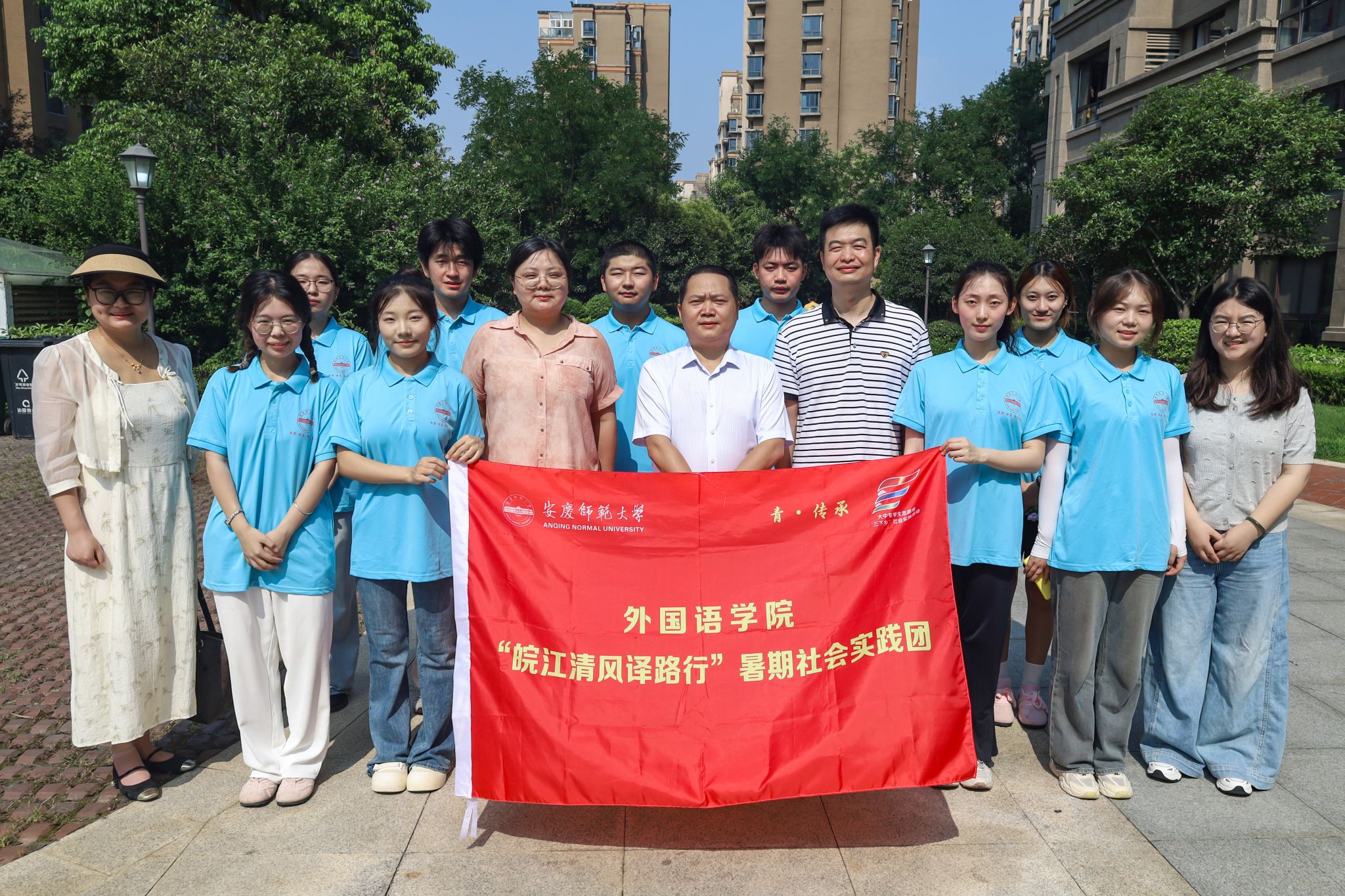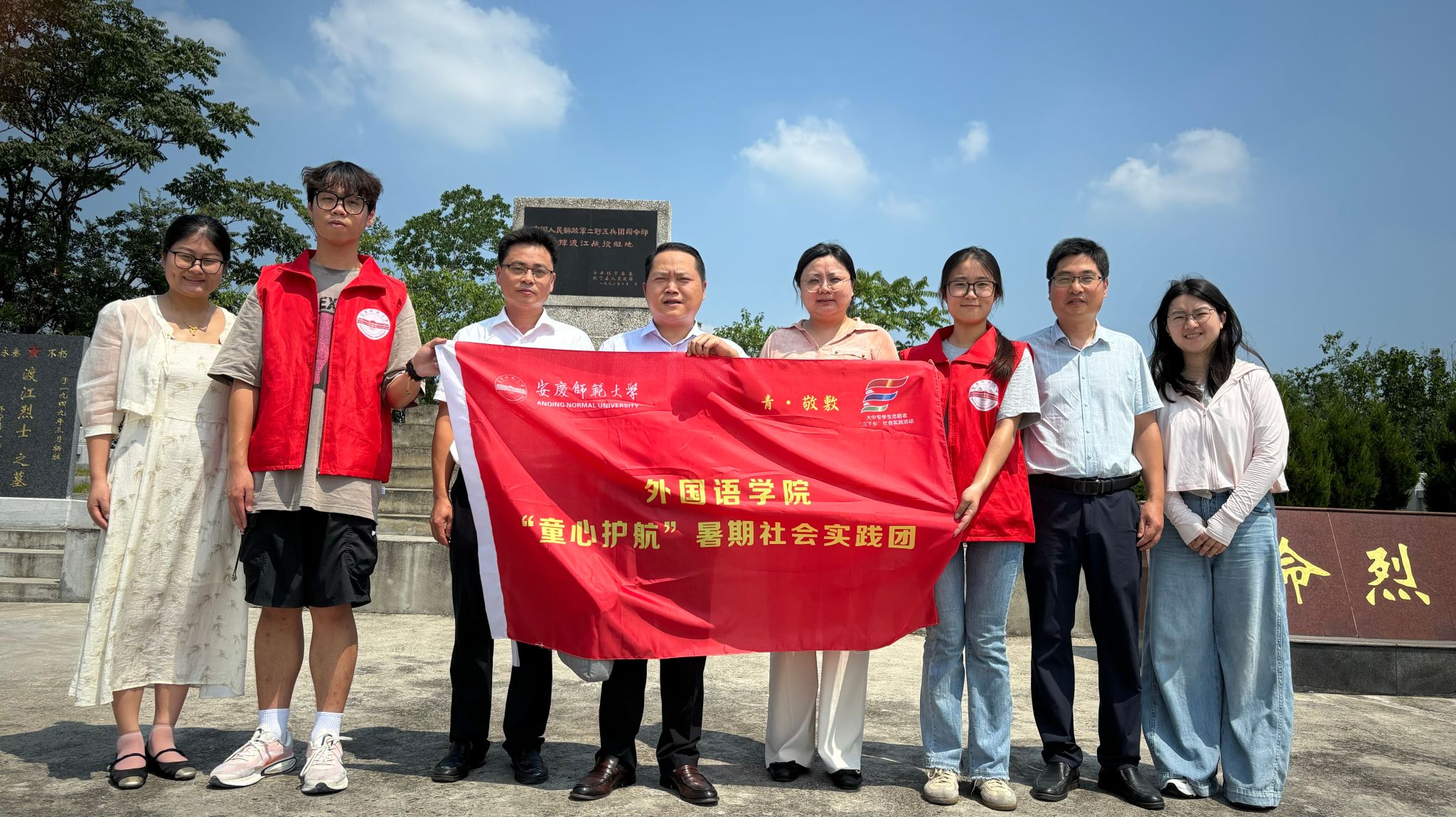 党委书记徐华胜、党委副书记何媛君一行看望慰问“皖江清风译路行”理论普及宣讲团和“童心护航”教育关爱实践团师生。安庆市红旗社区党委书记郑浩、怀宁县洪铺中心学校校长陈道锋出席慰问。