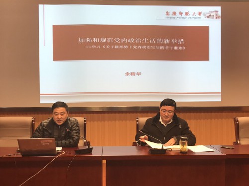 党总支举行学习贯彻党的是十八届六中全会精神专题报告会,马克思主义学院党总支书记余精华教授作了《加强和规范党内政治生活的新举措》宣讲报告。爱情岛论坛