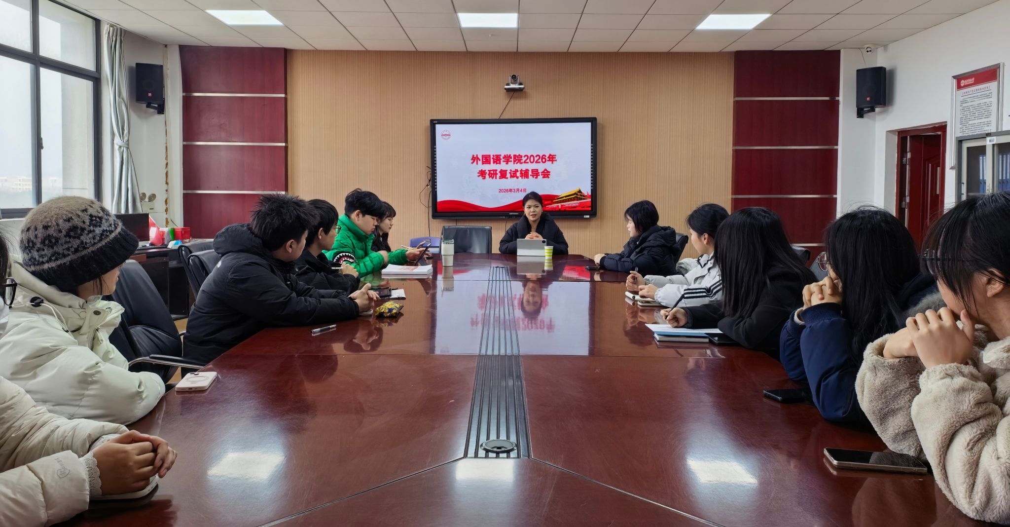 举办2026年考研复试辅导会。本次辅导会采取线上线下相结合的方式开展,部分教师代表、毕业班辅导员出席会议,近百名2026届毕业生参加会议。