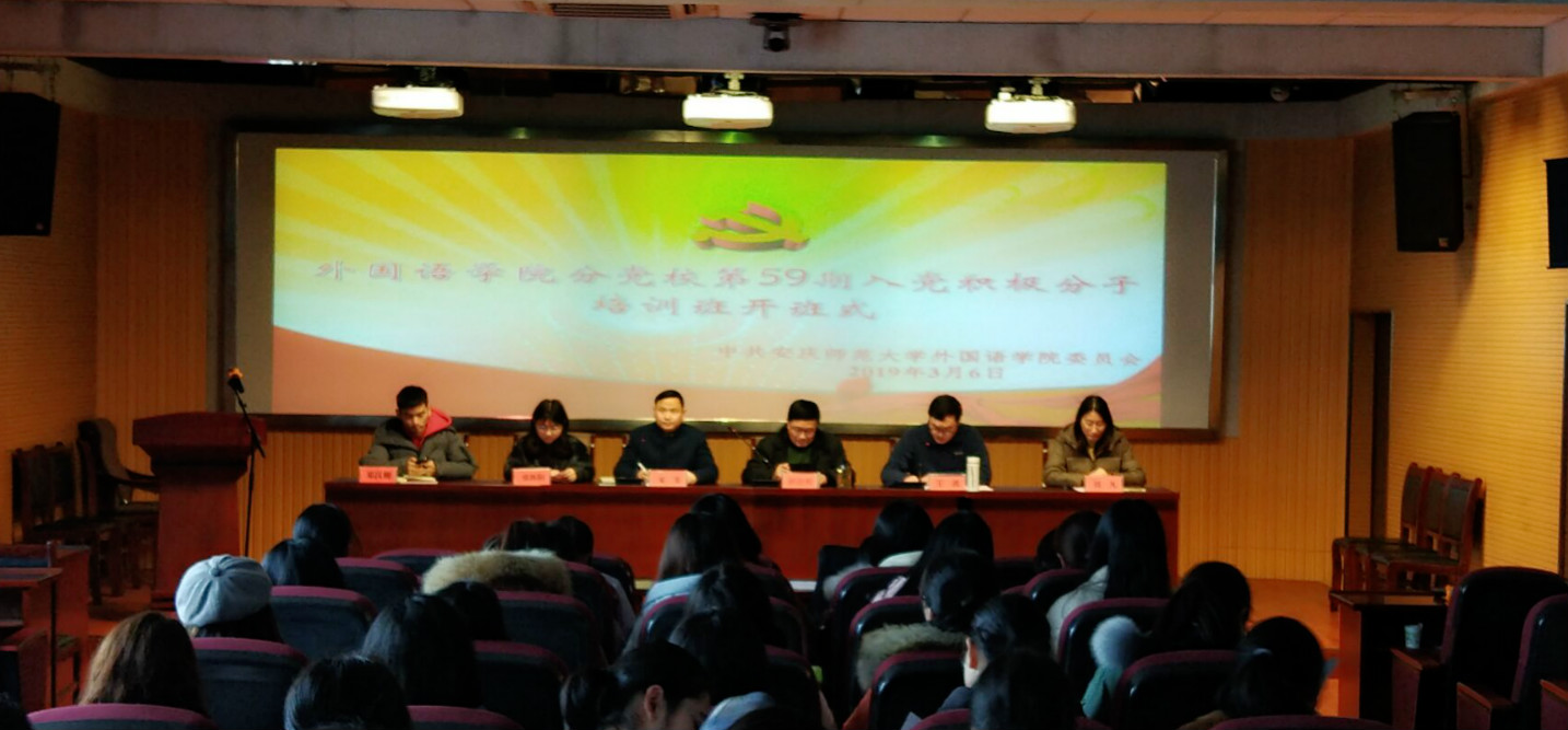 分党校第59期入党积极分子培训班方案》。2017级翻译班金倩倩同学作为学员代表作了表态发言。
