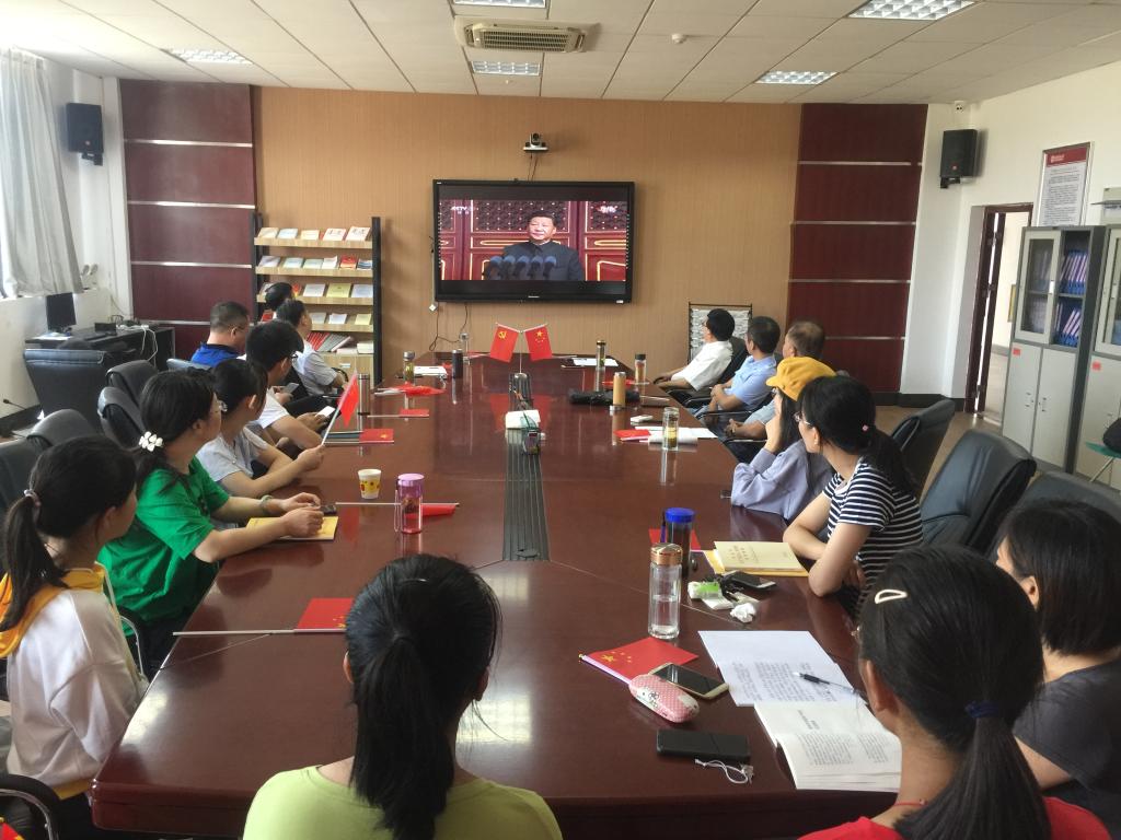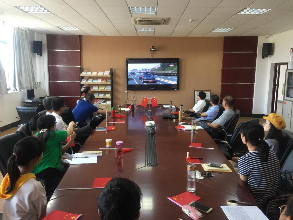 党委在E304会议室组织师生集中收看国庆70周年纪念活动,共庆祖国七十岁华诞。