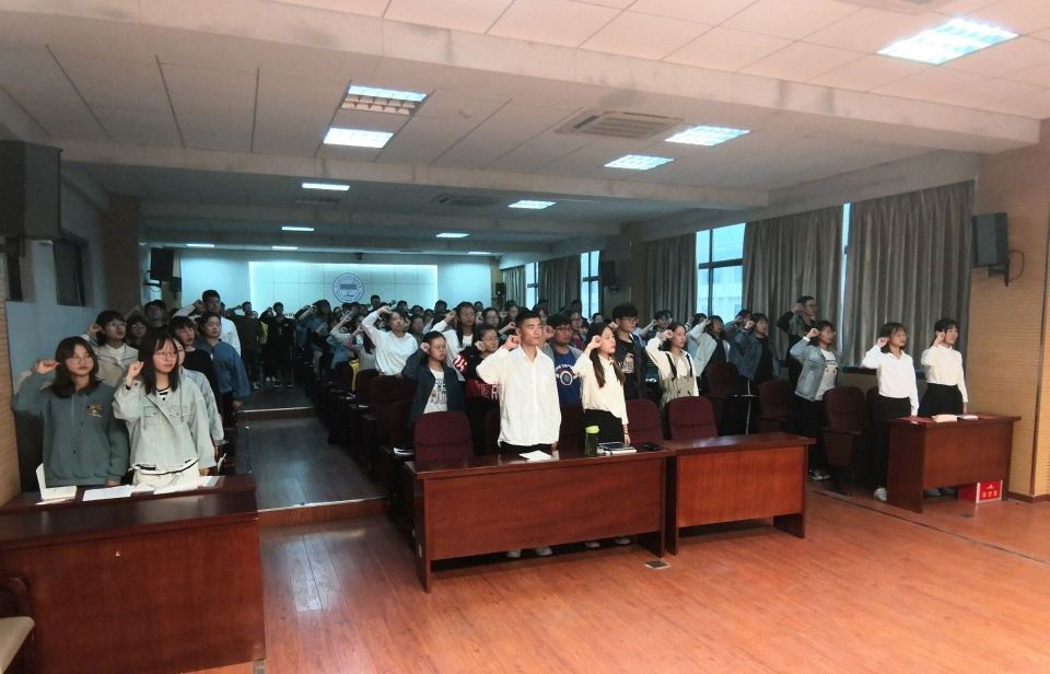 新一届团委学生会学生干部就职宣誓大会在E503会议室举行。学院党委副书记夏斐、原校学生会主席、新华集团总经理助理郑龙龙,学院全体学工组老师出席会议,会议由团委负责人主持。