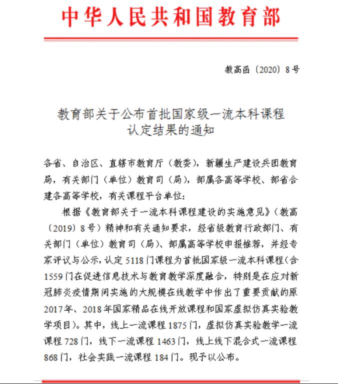 近日,教育部发布《关于公布首批国家级一流本科课程认定结果的通知》(教高函〔2020〕8号),爱情岛论坛