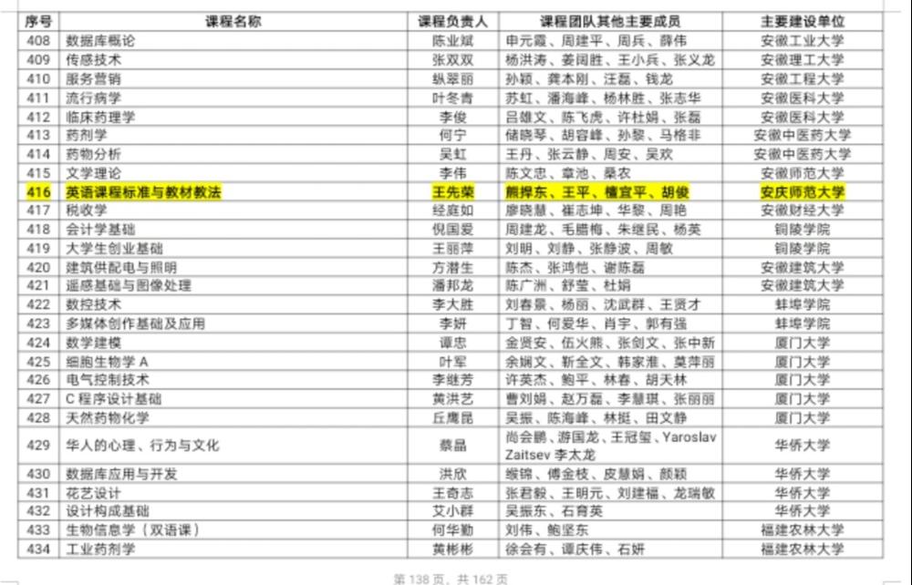 院长王先荣教授主讲的《英语课程标准与教材教法》课程被认定为首批国家级线上线下混合式一流课程。这是继2019年我校英语专业获批国家级一流专业建设点之后,学校在国家级一流课程领域取得的又一重大突破。