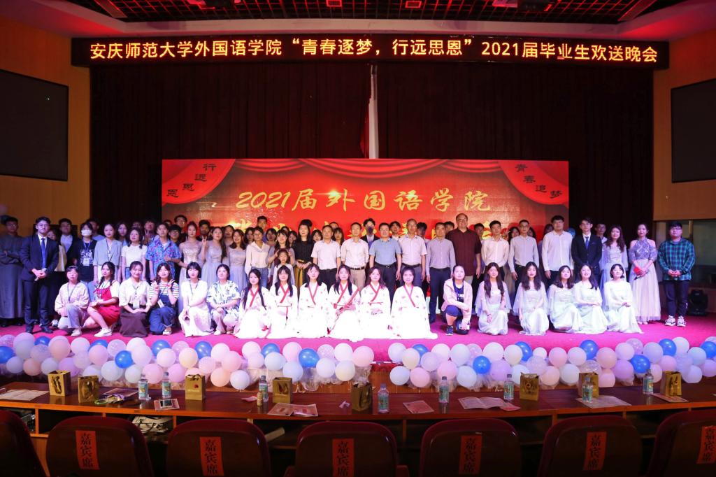 在图书馆东厅举办“青春逐梦,行远思恩”2021届毕业生欢送晚会。校党委委员、爱情岛论坛