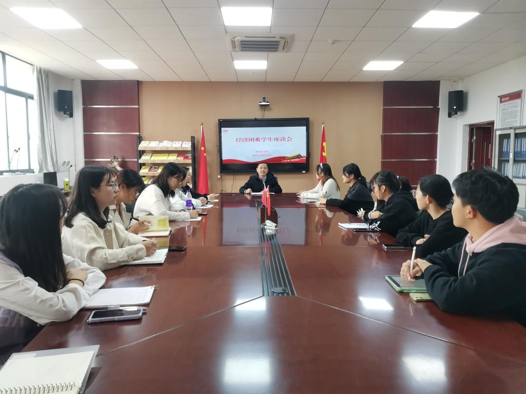 在E304召开经济困难学生座谈会,学院党委副书记夏斐、辅导员老师、部分经济困难学生参加了会议。