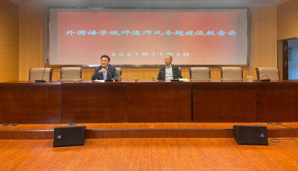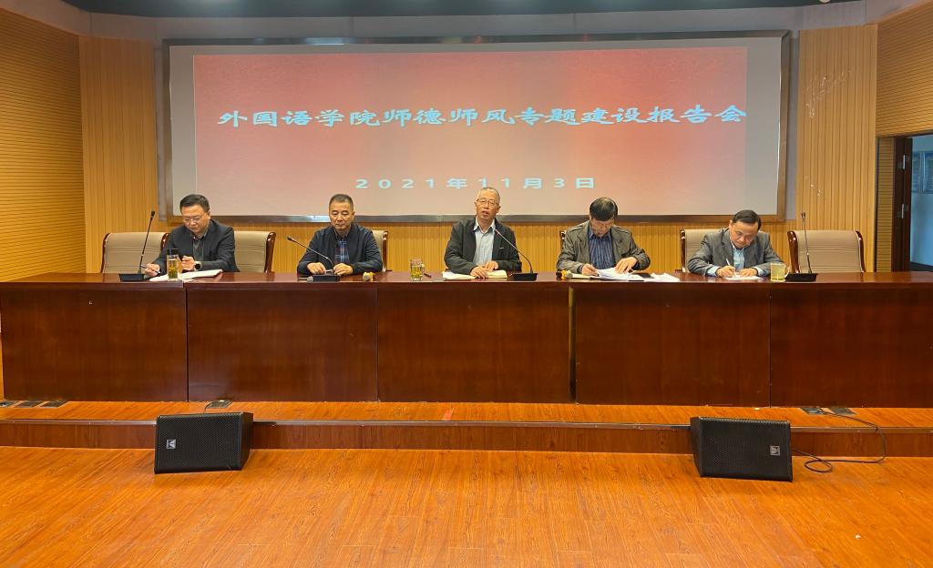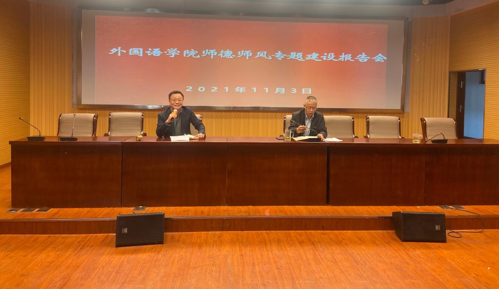 举行师德师风专项建设报告会,学院全体教职工参加会议,报告会由党委书记李亦亮教授主持。