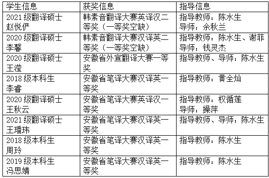 近三年外语学院学生荣获各类翻译大赛最高奖项信息