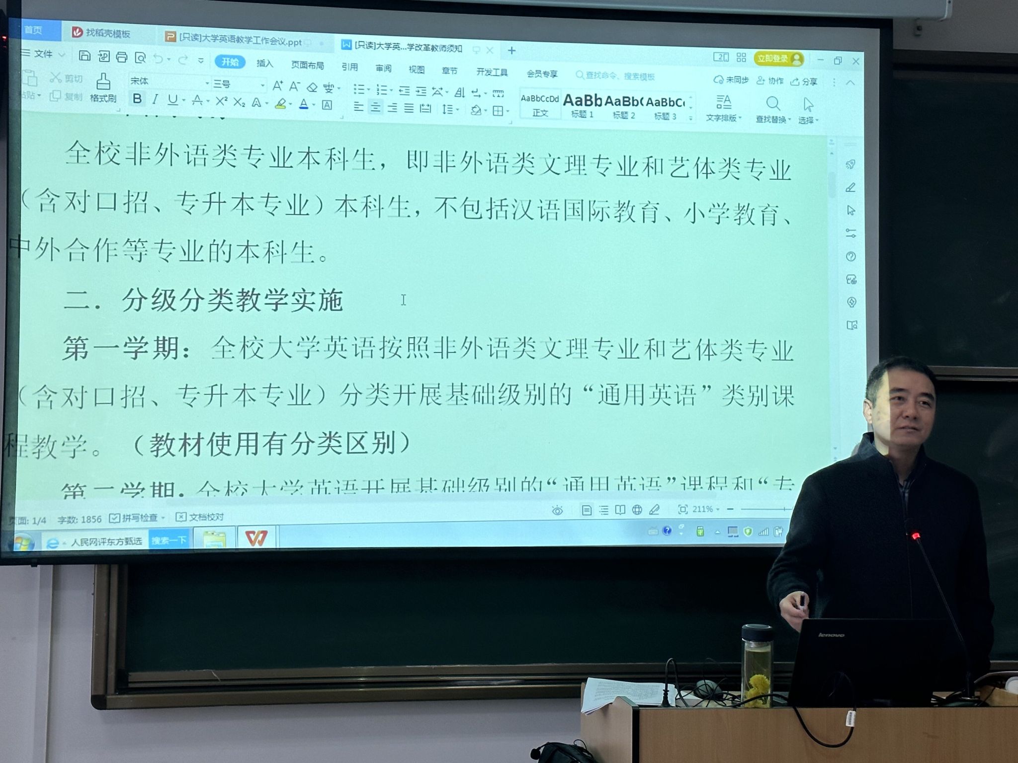 大学英语分级分类教学改革工作正在推进之中,全体大学英语教师要坚定不移地支持大学英语教学改革,坚定不移地提高课堂教学质量,坚定不移地讲规矩、守纪律。教师需要在教学理念、教学方法和教学习惯上更好地适应新形势和新要求,努力做好课程思政教学,严格遵守教学纪律,切实抓好课堂管理,着力提升教学质量,优质服务学校人才培养。