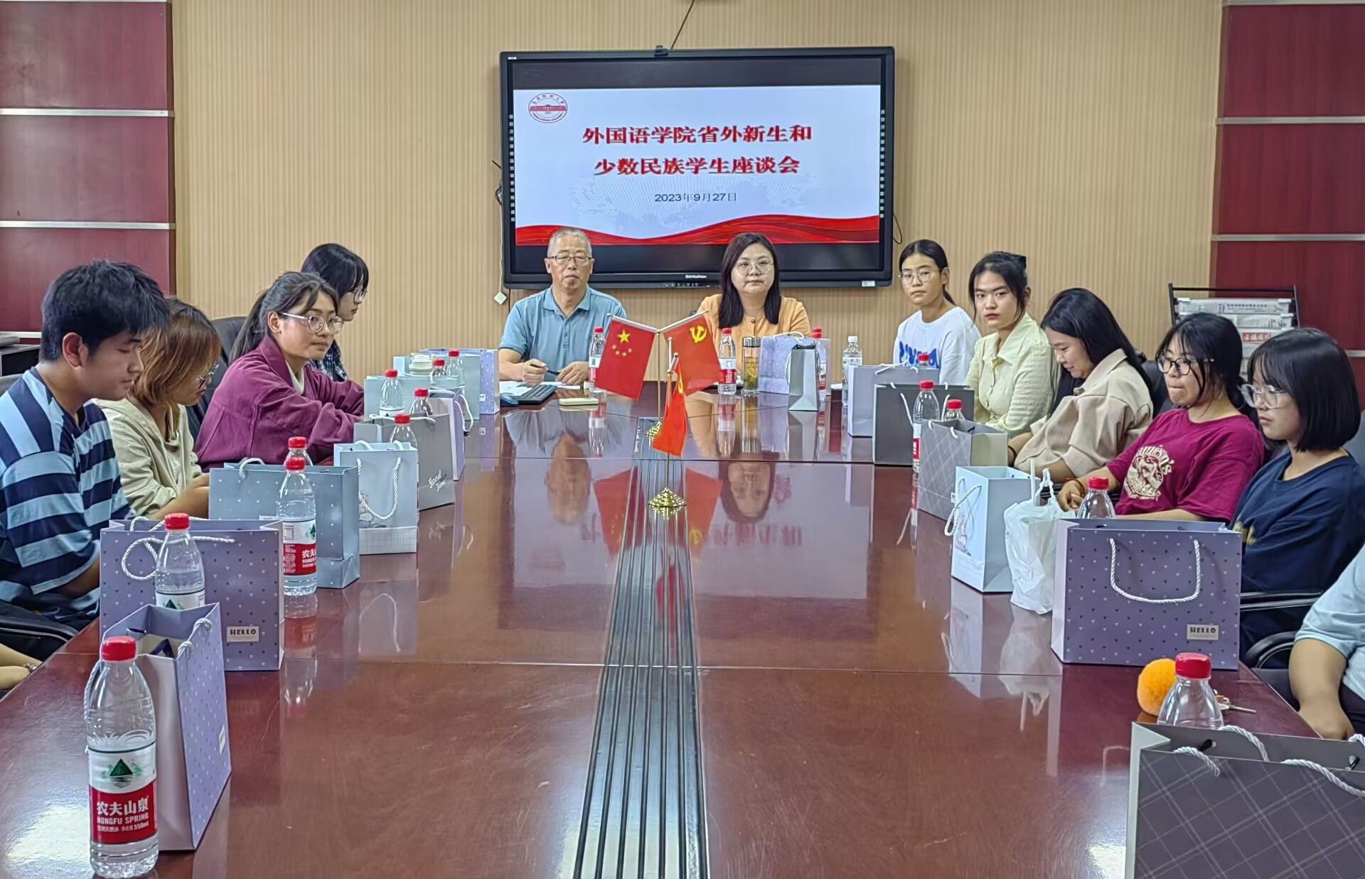 于E304会议室召开省外新生和少数民族学生座谈会。学院党委书记李亦亮、党委副书记何媛君出席座谈会,新生班辅导员、2023级省外新生和学院少数民族学生代表参会,会议由何媛君主持。