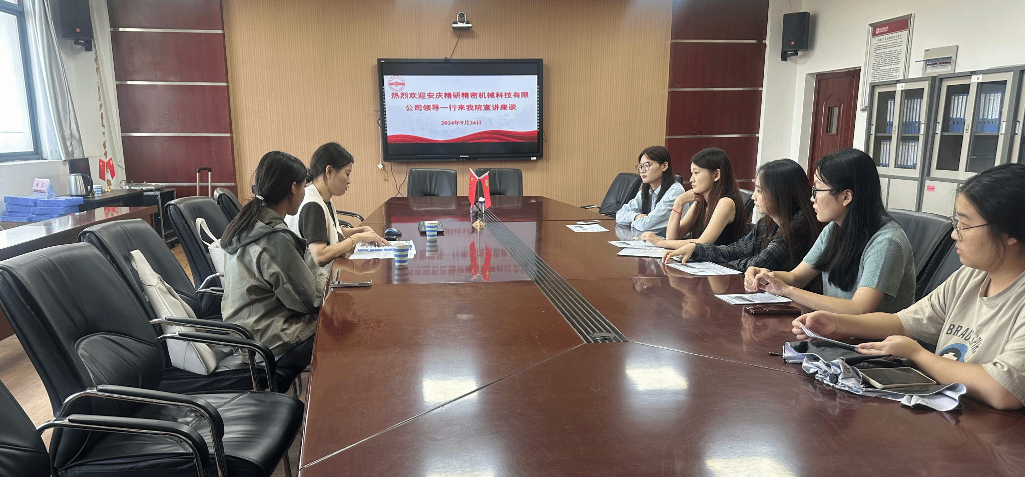加强校企联系,扎实开展访企拓岗工作。9月23日,学院副院长江加宏带领毕业班辅导员一行前往安庆临港经济开发区访企拓岗,实地走访了安徽锦美星灿新材料有限公司和安庆精研精密机械科技有限公司等单位,江加宏一行对各企业发展历史、建设项目和人才培养需求等方面进行了解,双方就人才培养、实习合作、就业指导等方面开展交流。开学初,学院邀请新东方集团、宁波亚虎进出口有限公司、安庆精研精密机械科技有限公司等多家企业来院宣讲座谈,畅通毕业生就业渠道,为校企双方在教育教学、人才培养、“双创”教育等方面开展深度合作奠定良好基础,目前近30名2025届毕业生于宣讲企业达成就业意向。