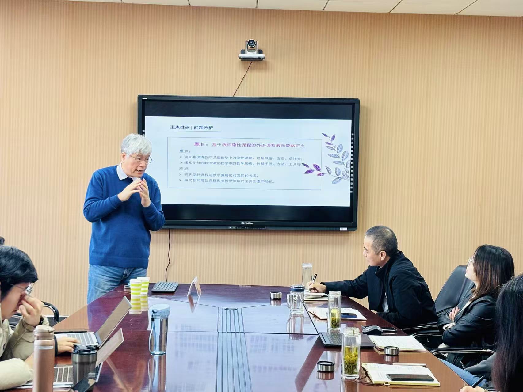 举办2026年度国家社科基金项目申报专家辅导会。上海外国语大学英语教授、博士生导师、《外语电化教学》副主编陈坚林受邀作题为“课题申请书常见问题及规避”的专题报告。学院国家社科基金项目申报人、学科方向带头人、学术骨干、硕士生导师及部分研究生参加了研讨交流。会议由院长江加宏主持。