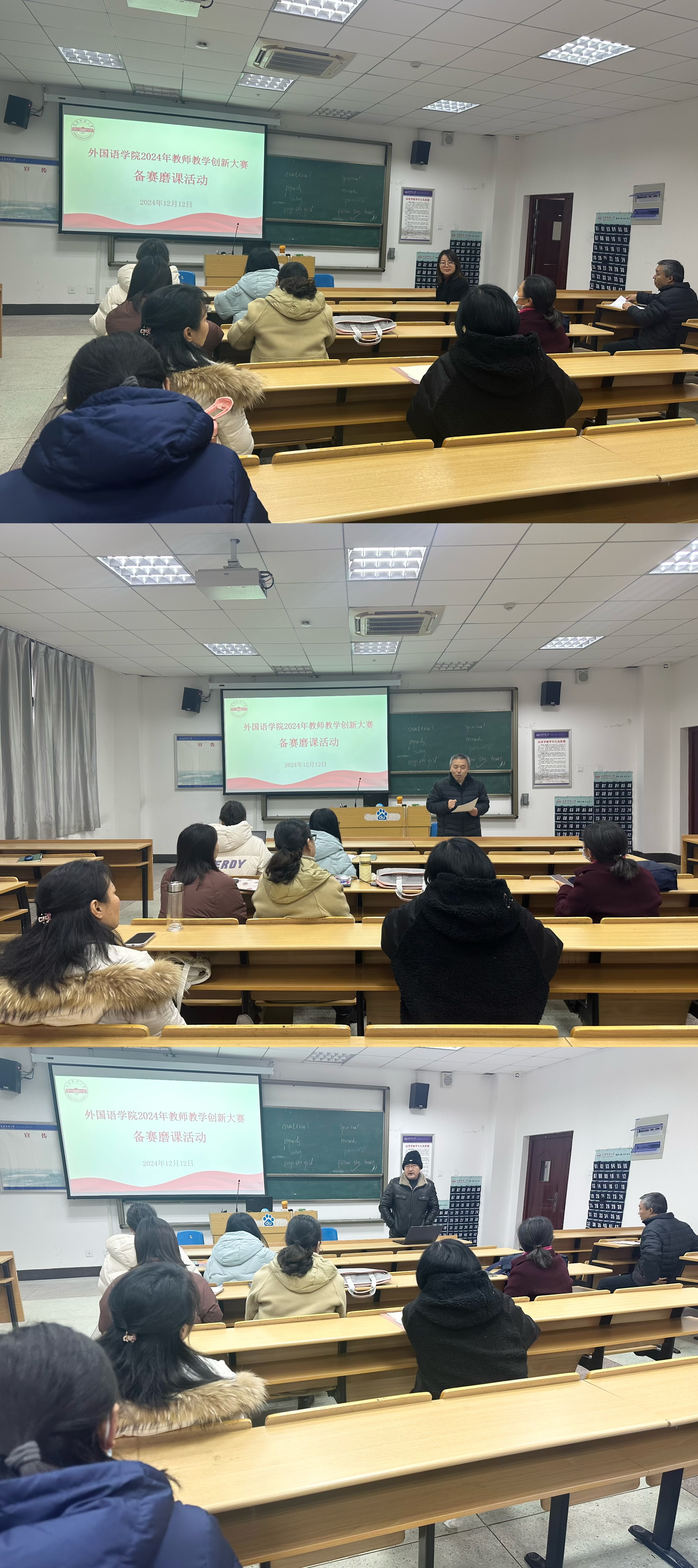 此次备赛磨课活动不仅为备赛教师提供了一个展示和交流的平台,也为学院全体教师提供了一个学习和提升的机会。通过此次活动,学院教师更加深入地理解了教学创新的重要性和紧迫性,也更加明确了未来教学改革的方向和目标。学院将继续秉承“以学生为中心,以创新为驱动”的教学理念,积极推动教学改革和创新,不断提升教学质量和水平,为培养具有国际视野和创新能力的高素质外语人才做出更大的贡献。(撰稿/摄影:汪李平 审核:瞿宁霞)