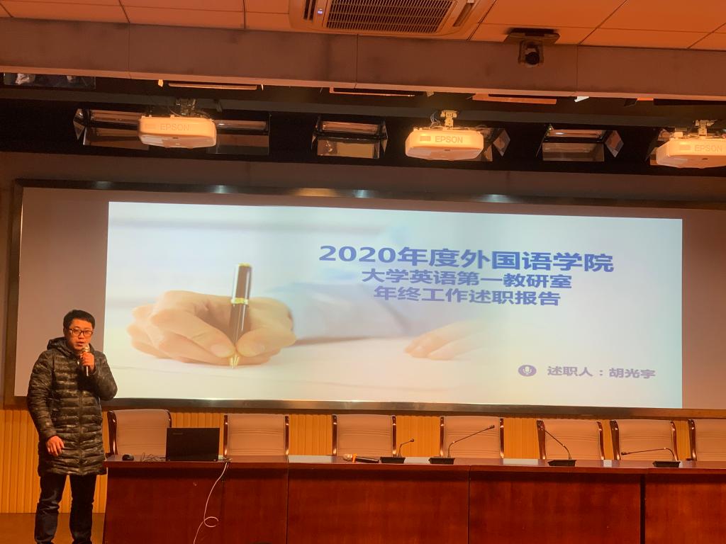 在E503会议室开展2020年度教研室年度述职汇报工作。会议由学院分党委书记郝涂根主持,学院党政班子和全体教师参加会议。