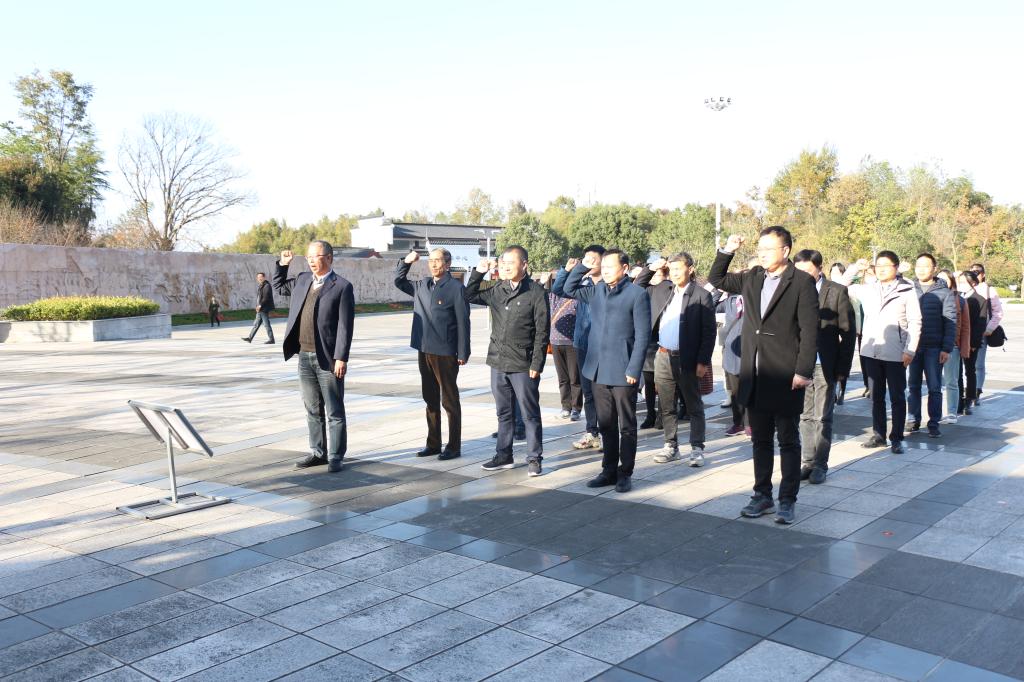 霍山是中国革命的重要策源地,是人民军队的重要发源地,是鄂豫皖革命根据地的重要组成部分,是安徽省红色区域中心。在霍山县红源广场烈士纪念雕塑前,全体参训学员在学院党委书记李亦亮带领下面向党旗,紧握右拳,重温入党誓词。