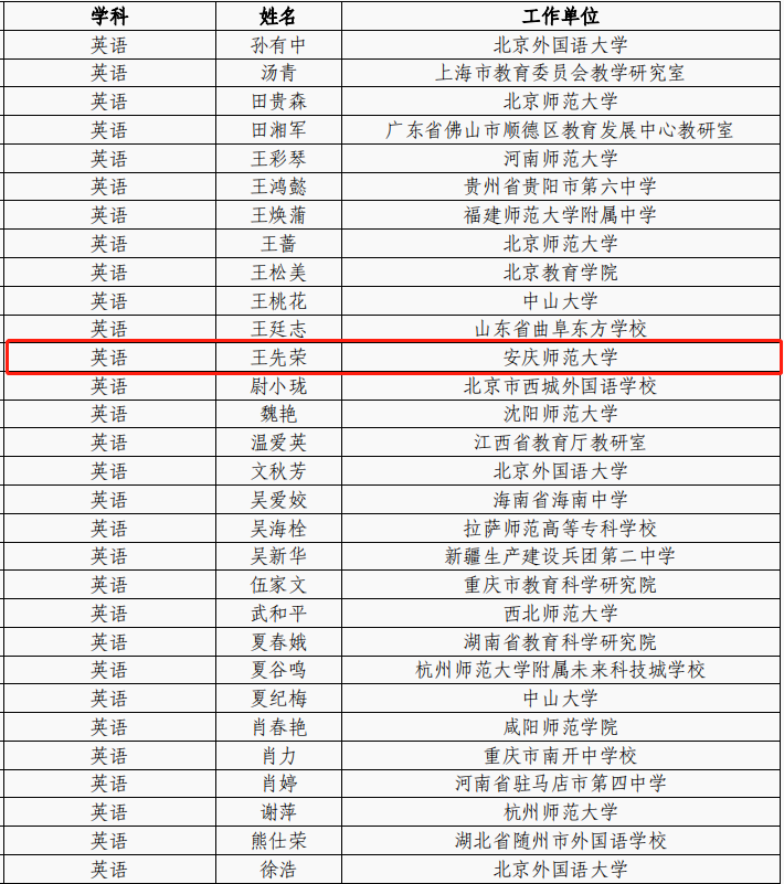 近日,教育部“国培计划”—中小学骨干教师培训项目执行办公室公布了“十四五”中小学幼儿园教师国家级培训计划专家资源库人员名单,我院王先荣教授成功入选专家库(英语学科)。
