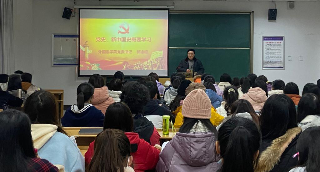 党委书记郝涂根讲授了题为“党史、新中国史学习概要”的专题党课。学院党支部书记、辅导员、第62期全体入党积极分子参加了党课学习。