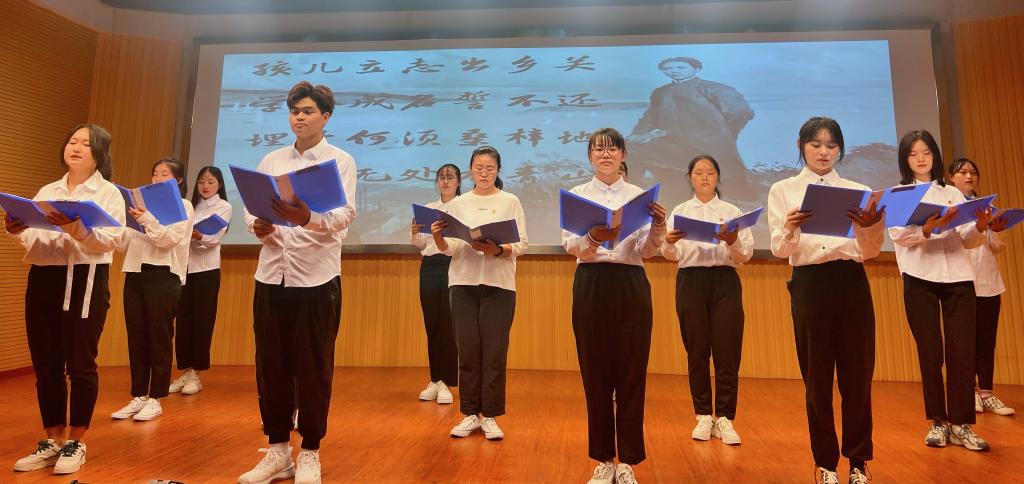 “我们熟读了许多毛主席的经典著作,发现这些诗歌的创作和党的发展历程息息相关。”外国语言文学类专业2020(2)班的程赵骏介绍到,他们希望通过朗诵毛主席在党的不同时期创作的诗篇,从红色经典中感受党的百年峥嵘岁月。