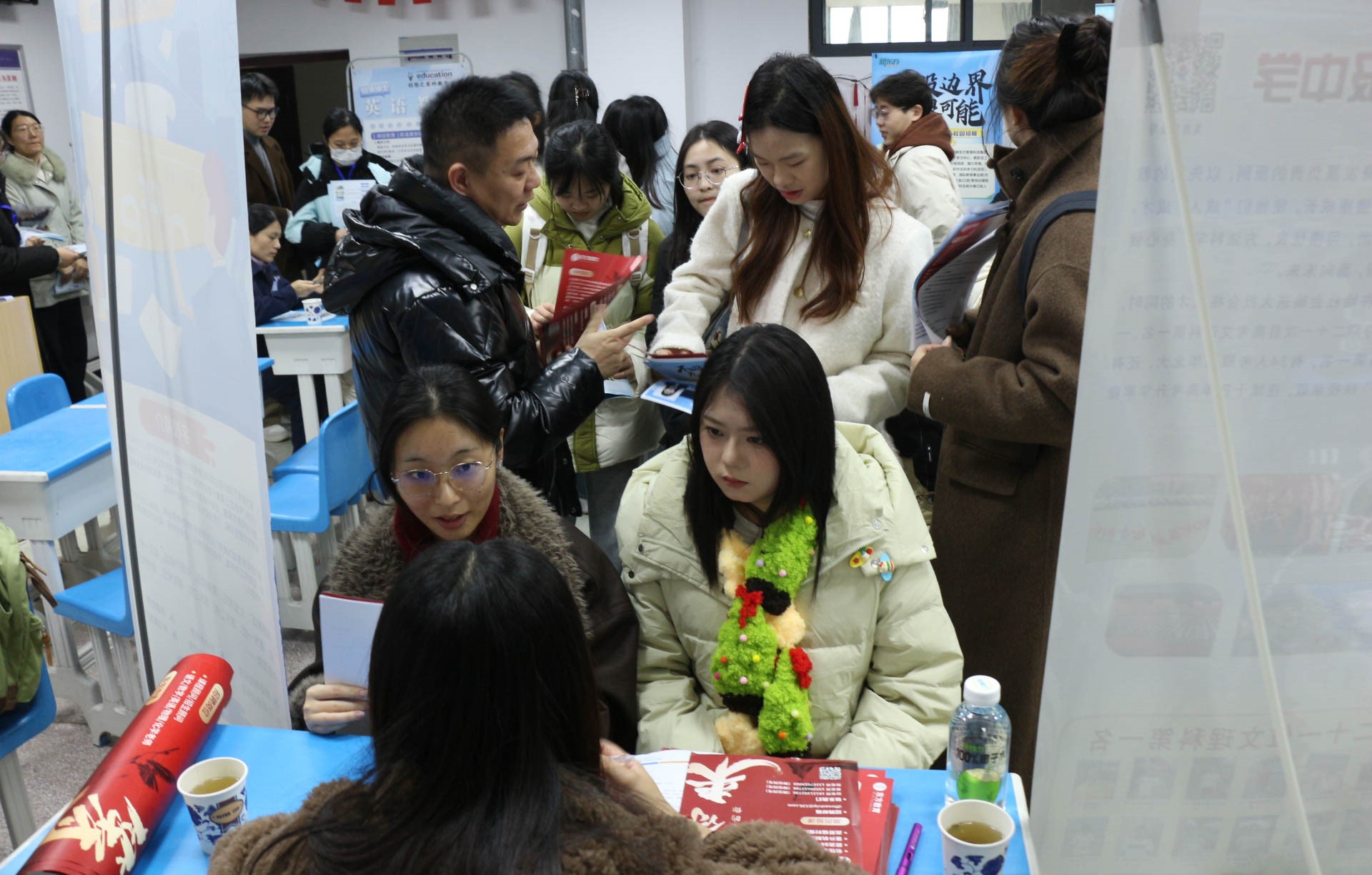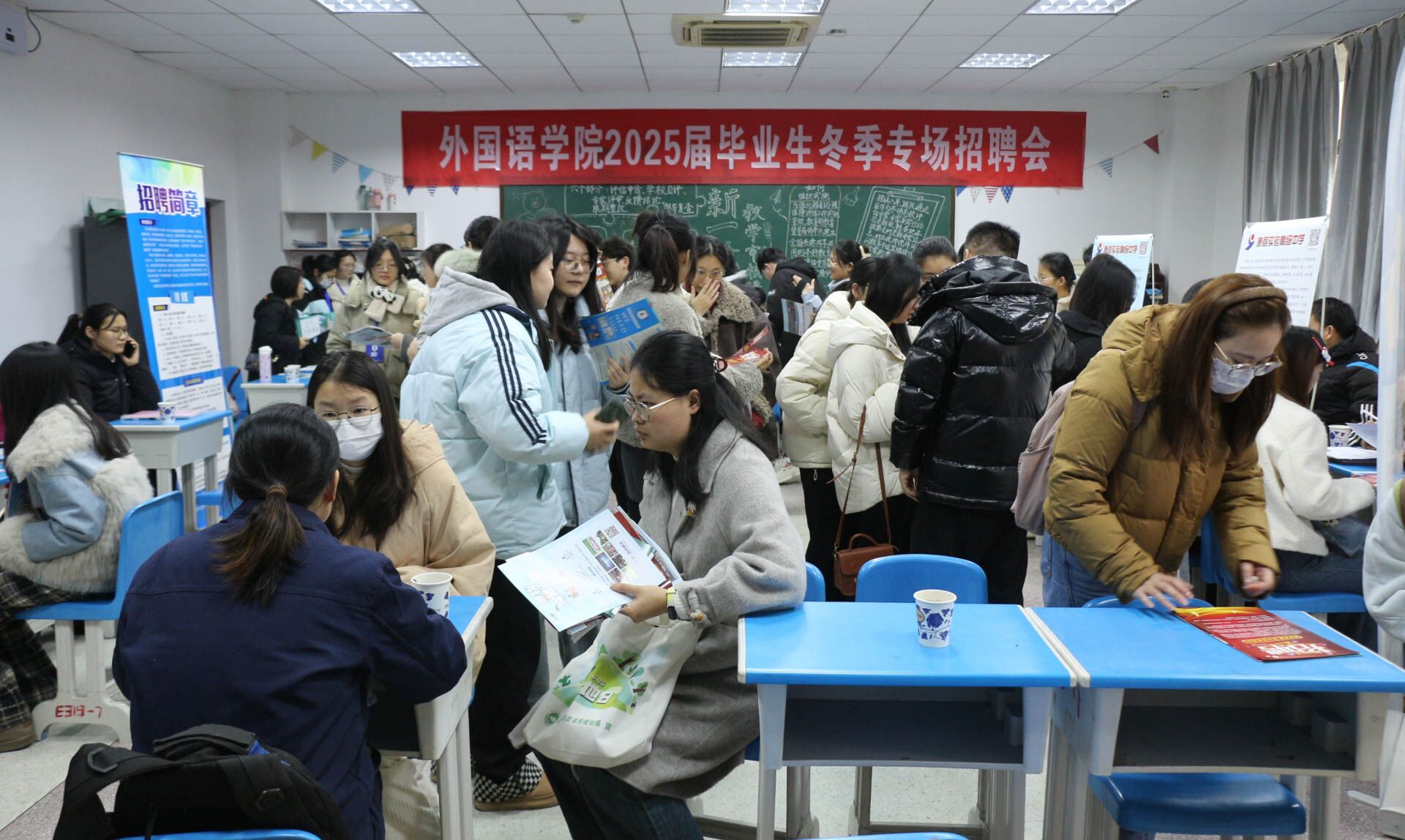 在E203举办2025届毕业生冬季专场招聘会,萧县实验高级中学、寿县万瑞中学、合肥新东方、上海东方教育学校、江苏朗恩斯科技股份有限公司、北京贝仕特国际教育科技有限公司等11家用人单位来院招聘人才,为应届毕业生提供了丰富多样的就业岗位,吸引了百余名毕业生参加此次招聘会。