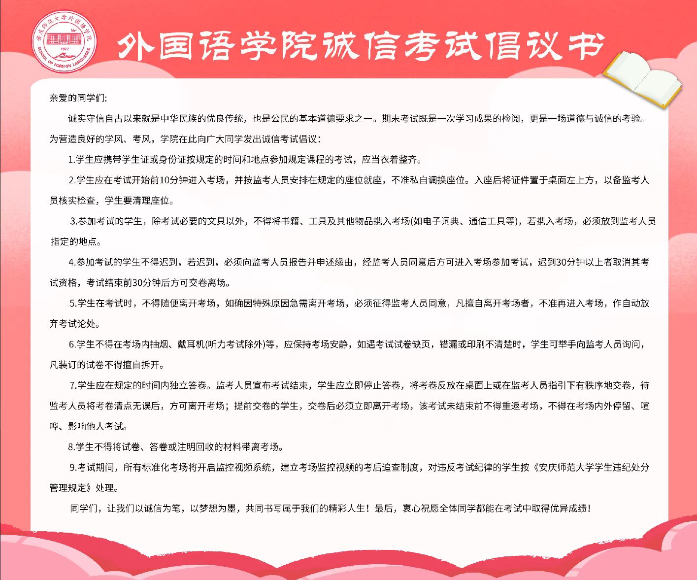 多措并举贯彻学校考风学风建设大会精神,加强考风考纪教育,推进优良学风教风建设,增强学生诚信精神与纪律意识,旨在营造公平、公正、诚信的考试环境,确保期末考试各项工作顺利推进。