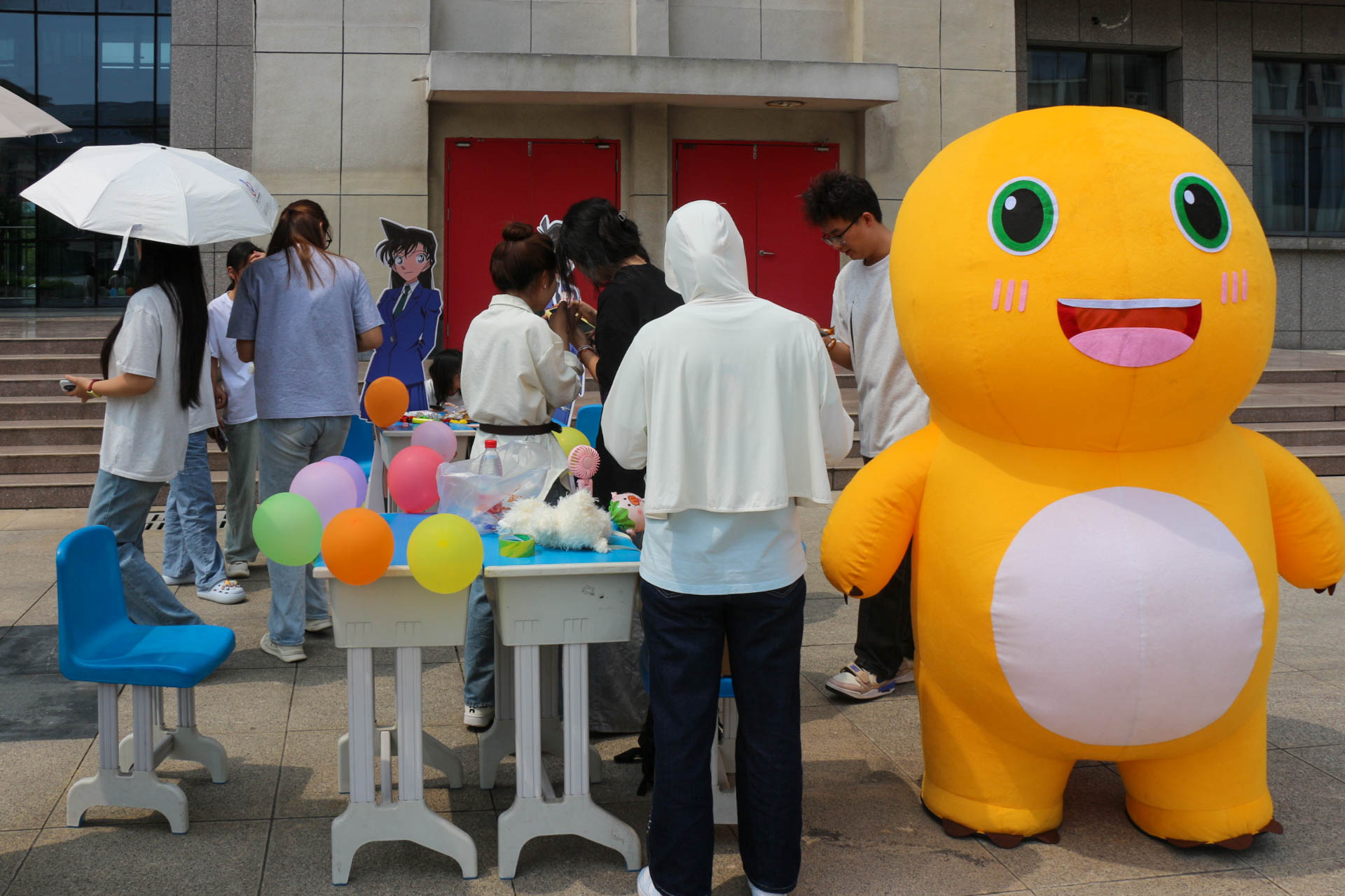 巨型卡通玩偶成为全场最受欢迎的“情感加油站”。工作人员化身柔软可爱的萌宠,张开双臂送出无声的关怀。同学们纷纷驻足拥抱——有人闭眼微笑轻拍玩偶后背,有人俏皮比心合影,还有人将脸颊埋进绒毛长舒一口气。“这个拥抱像有魔法,压力瞬间消散了。”2024级外国语言文学类6班王馨羽轻抚玩偶耳朵感叹道。
