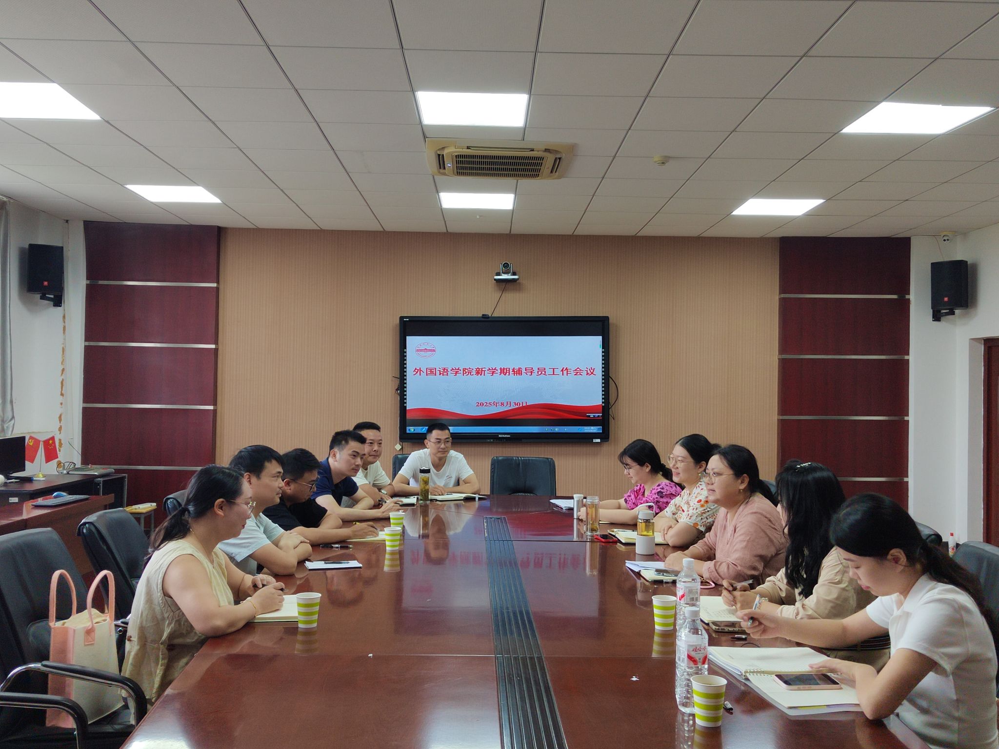 于E304召开新学期辅导员工作会议,全体专兼职辅导员参加了此次会议,会议由学院党委副书记何媛君主持。