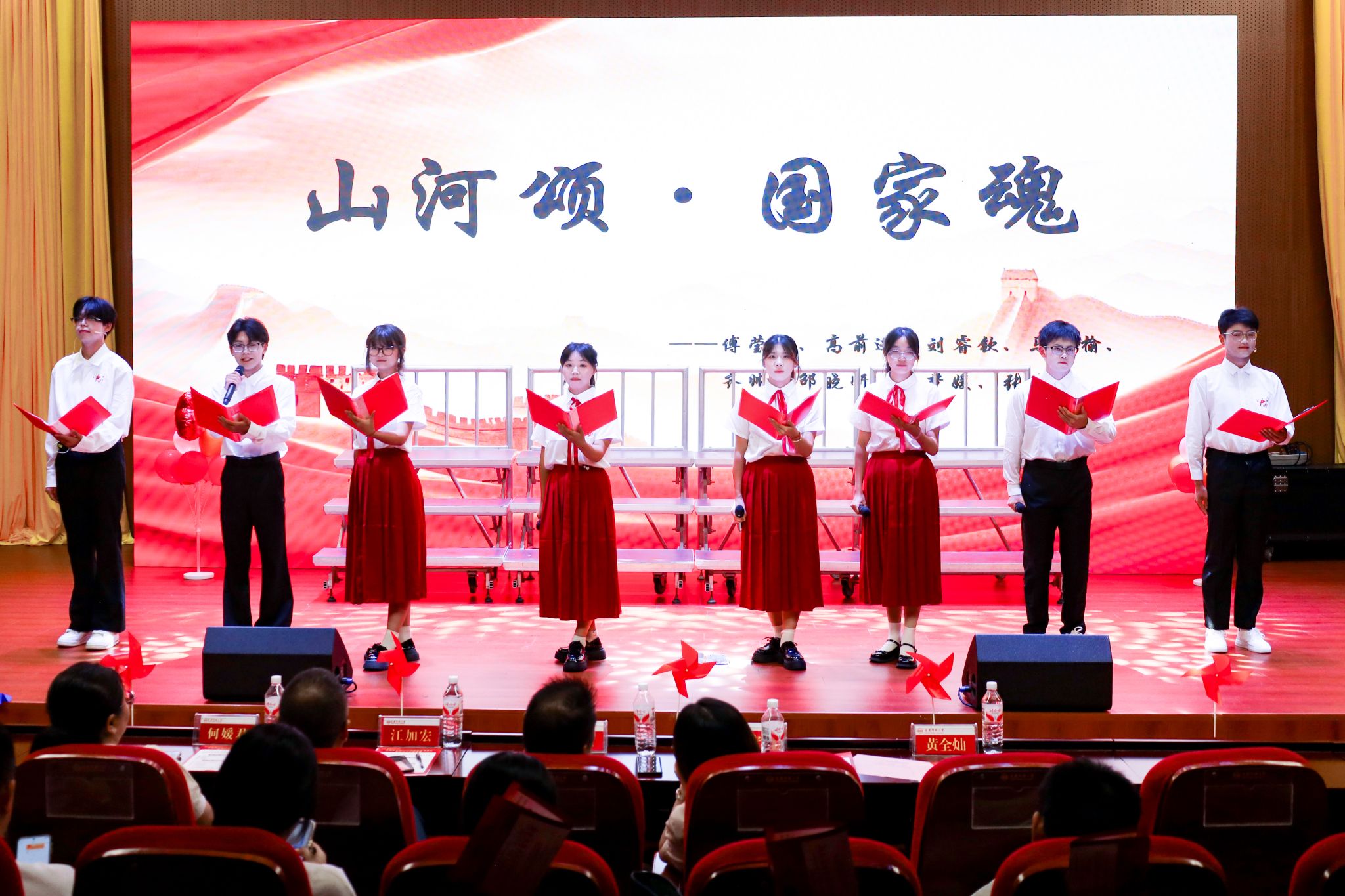主持队的朗诵《山河颂·家国魂》,将民族危难之际中华儿女以血肉之躯捍卫家园的情怀展现得淋漓尽致……