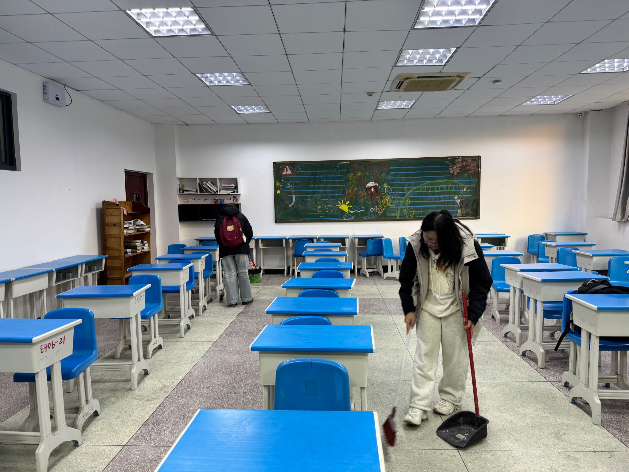 楼宇环境的细致清扫中。他们对教室、中庭等区域进行了全面保洁,尤其注重对卫生死角的深度清理,不遗漏任何一处污渍杂物,经过辛勤劳动,相关区域变得窗明几净,环境面貌焕然一新。此过程不仅是对校园环境的美化,更是对学生劳动技能、责任担当意识的现场教学与锤炼,使学生在挥洒汗水中体会劳动不易,珍惜劳动成果,树立正确的劳动观。