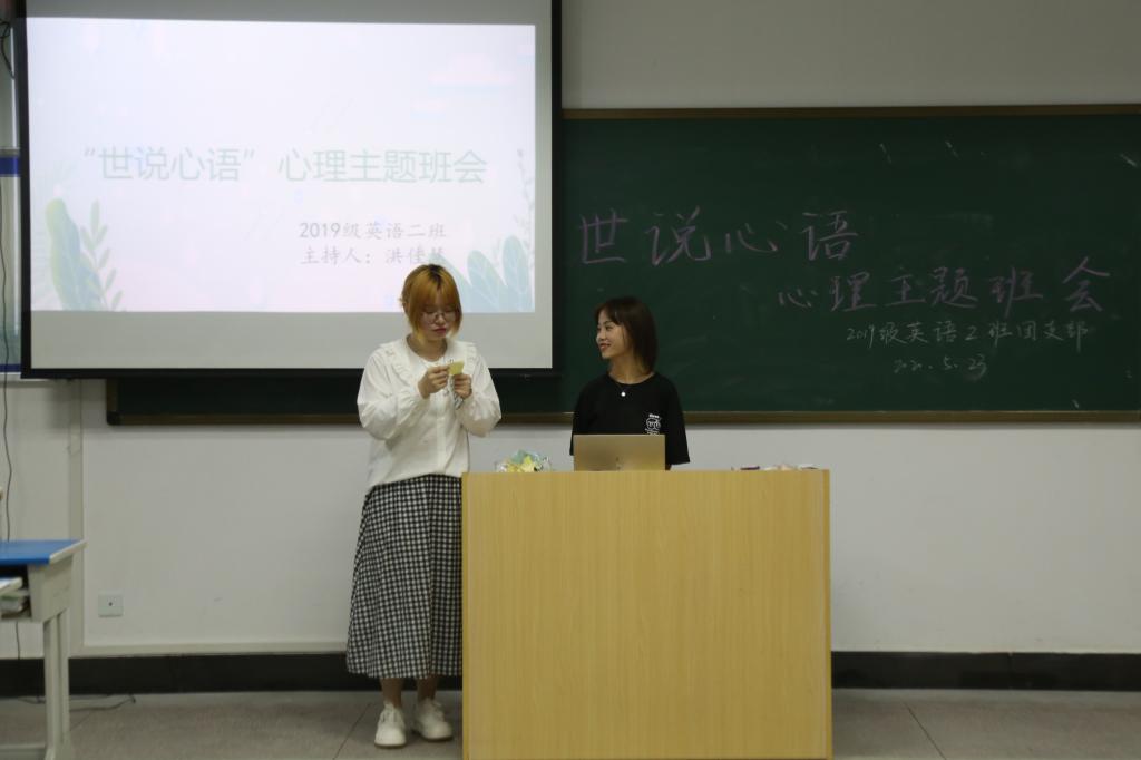 407教室内传来一片欢声笑语,原来是英语专业2019(2)班正在开展“世说心语”心理主题班会。