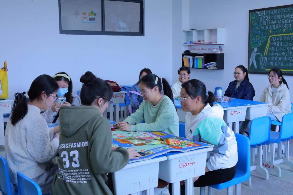 教学楼内,优秀电影展播和狼人杀、“你画我猜”等趣味小游戏轮番上阵,种类丰富的电影类型和花样百出的趣味小游戏吸引越来越多的学生参与其中,大家直呼“好玩!”“过瘾!”