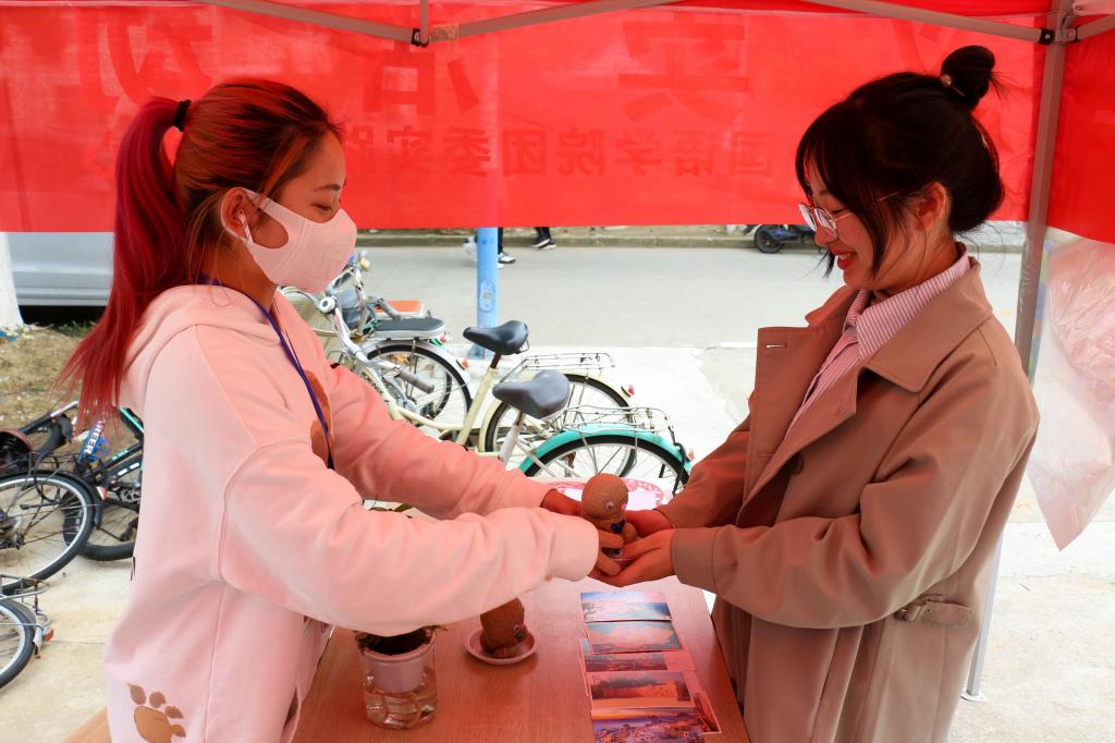 数学类专业2021(4)班的张彤则花费“巨资”,以8元钱买下一盆公孙树。“这盆植物很美,价格也很实惠,我没有拒绝的理由。”在工作人员的相关介绍下,张彤进一步了解到爱心义卖活动的意义,“能够帮助别人是一件快乐的事情,这次志愿活动也让我更深入地了解到雷锋精神的内涵。”在她看来,力所能及地贡献出自己的一份力量,就是对传承雷锋精神最好的诠释。