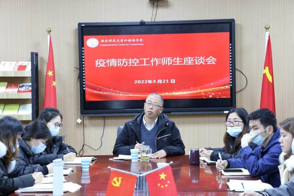 在E304举办疫情防控工作师生座谈会。学院党委书记李亦亮,党委副书记王惠、各班级辅导员和各年级学生代表参会。