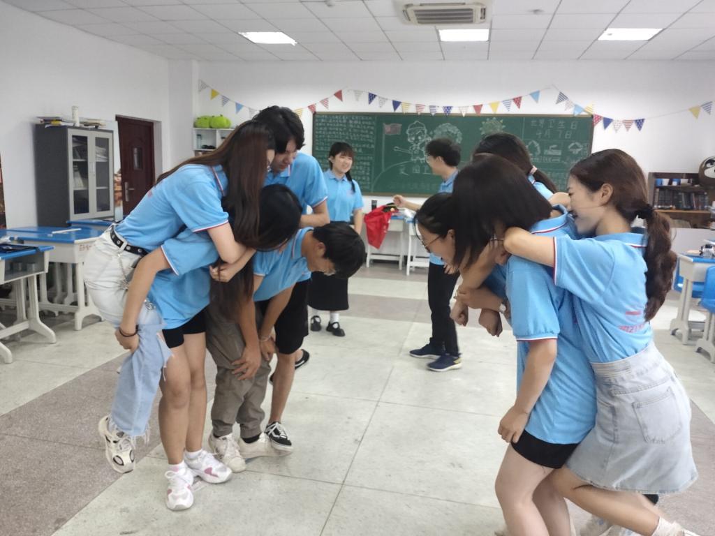 个人表演增进彼此了解、分组作战考验团队默契、全员合作培养协作精神,五个各具特色的游戏依次进行,成员间相互调侃、友爱互动,欢笑声充满整个教室。“我想通过游戏增进成员间情感,发现大家的优点,所以我倾向于选择团队性、创造性强的游戏,在游戏中展现个人特点。”活动负责人张紫若说。