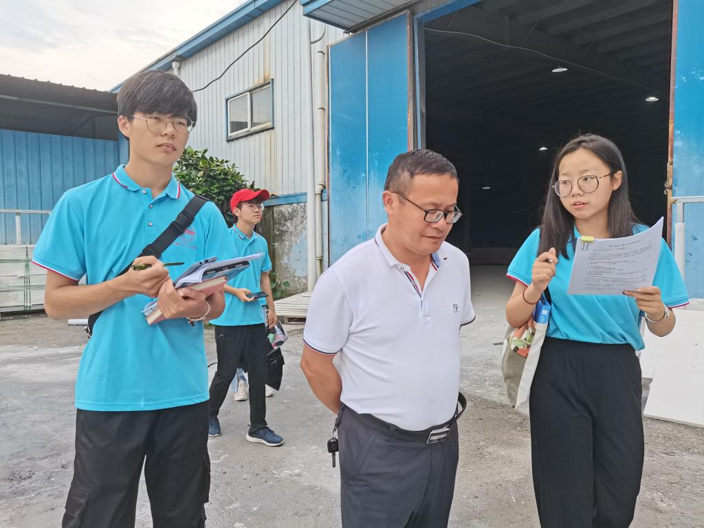 在望江县高士镇镇政府的带领下,实践团实地走访了省级重点龙头企业金燕红米业有限责任公司和砼创新材料科技有限责任公司。“近年来,企业发展环境是否有所改善?”“企业的融资环境怎么样?”“企业未来的发展规划是什么?”……调研期间,实践团实地考察企业工厂,了解企业硬件设备并对企业相关负责人进行问卷调查。队长吕成慧介绍,为了助力中小微企业发展,实践团提前查阅企业相关资料,收集中小企业目前发展所存在的问题,在资金、劳动力、市场、政策等多方面探索龙头企业发展模式。
