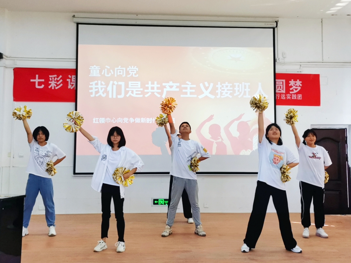 整个汇演现场利用新媒体进行直播,共有300余人次观看,7400余次点赞。从节目策划、道具服装到场地设计,实践团成员各显神通。汇演现场气氛热烈,歌舞、朗诵、相声、心理情景剧等多个节目让人目不暇接,通过讲、演、唱、奏结合的方式,让青年学生在艺术氛围中感悟党史,接受教育。“实践团出发前就开始筹划汇演节目,实践期间每晚都排练,耐心打磨细节,注重与支教学生的配合与互动。”队长吕成慧说。