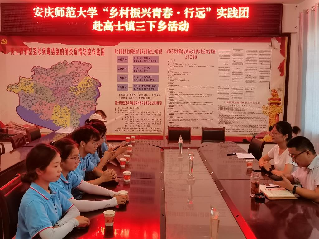 “乡村振兴青春·行远”实践团前往望江县高士镇开展暑期三下乡社会实践活动。高士镇副书记郝加兵、纪委书记王建国、新坝中学校长檀传奇等领导热情接待了实践团。
