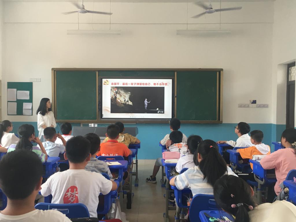 支部党员来到大龙山镇中心小学六年级(2)班,为同学们进行党史宣讲。青春的面孔稚嫩又纯净,他们笔直地坐着,目光中透露出期待。宣讲员结合一些党史录像和访谈纪录片,向小朋友们介绍了皖南事变的背景、经过和产生的影响,阐释了皖南事变中体现出的中国共产党顾全大局,始终站在国家利益、民族利益的高度进行理性思考的崇高品质,以及在危机面前冷静分析、力挽狂澜的伟大能力,并设置一些互动环节和激励措施,引导大家深入思考皖南事变的现实意义。在观看新四军政治部主任袁国平的英雄事迹时,同学们热情高涨,他们为英雄的无畏和奉献精神感到无比的崇敬和钦佩,并踊跃发言,其中有同学说,“我们今天的和平幸福生活都是革命先辈们用鲜血换来的,只有我们好好学习,自强自立,才能让我们国家越来越强大,不再被外人侵略,永远和平。”作为六年级的孩子,能拥有如此的觉悟和理想是国之幸运。正是这样一代又一代的强劲后浪,我们的国家才能稳步发展。