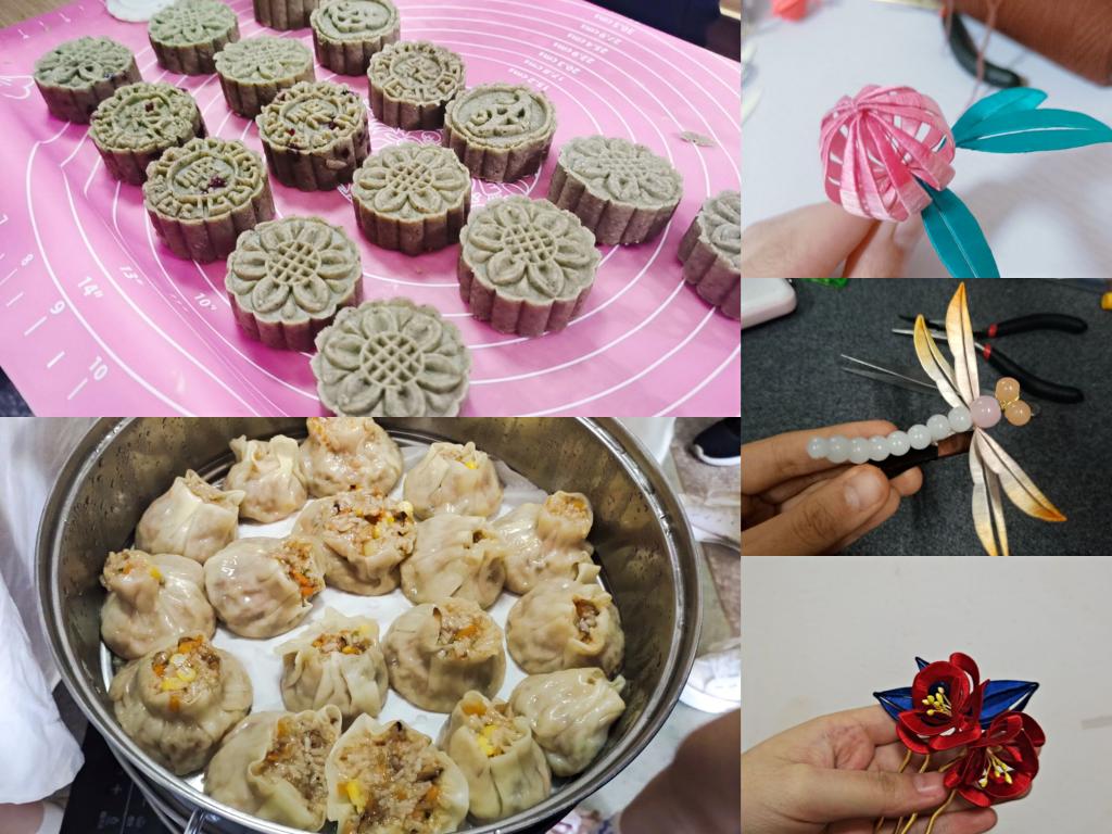 公共俱乐部劳动实践课程也持续热烈开展。在端午节来临之际,“小当家”中式食点俱乐部成员们利用面粉、牛奶、黄油等食材制作奶黄包、绿豆糕,与清明节制作青团时相比,成员们的手法愈发熟练,烹制的糕点也更加精致美味。在动手制作传统美食的同时,同学们对传统节日和习俗的了解也进一步加深。馨语花艺俱乐部的成员借助皱纹纸制作纸艺花,他们将各色纸卷裁剪至所需大小,连续叠放对折出不同形状,最后用胶水、铁丝等工具进行固定,一朵朵栩栩如生的康乃馨、百合纸艺花在成员们的巧手下诞生了。