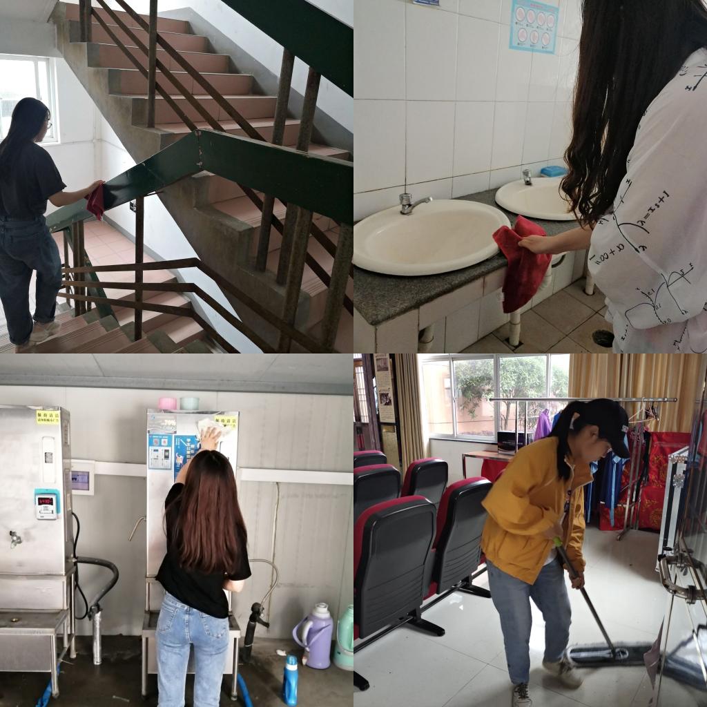 2019级、2020级全体学生参与“最美校园”环境整治活动。同学们以班级为单位,在校园内帮助保洁人员、宿管阿姨清理卫生死角,集中打扫楼道、走廊等公共区域,并擦洗饮水机、楼梯扶手等公共设施。同学们配合默契,任劳任怨,用劳动换来了校园环境的干净整洁。