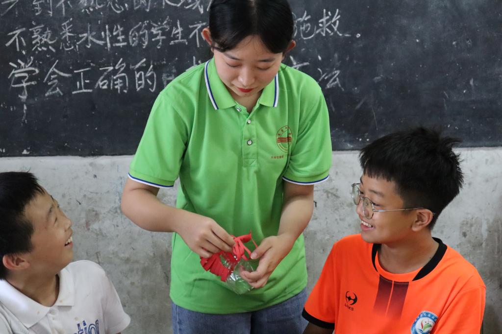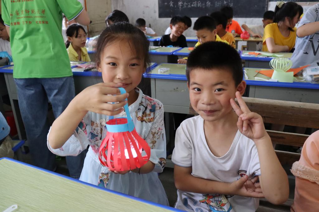 朱玥琪介绍,由于非遗花灯的理论知识比较复杂,而课堂中的留守儿童学段不同,她在授课时遇到了不少困难。为此,她在孩子们的提议下增加了教学动画视频,用通俗易懂、简单生动的方式讲解花灯制作过程,最终顺利完成了教学任务。“孩子们的创造力和观察力是无限的。一位同学在课堂中还观察到花灯被点亮时会投射出漂亮的光影,他们能自发地感受到生活中的美。”