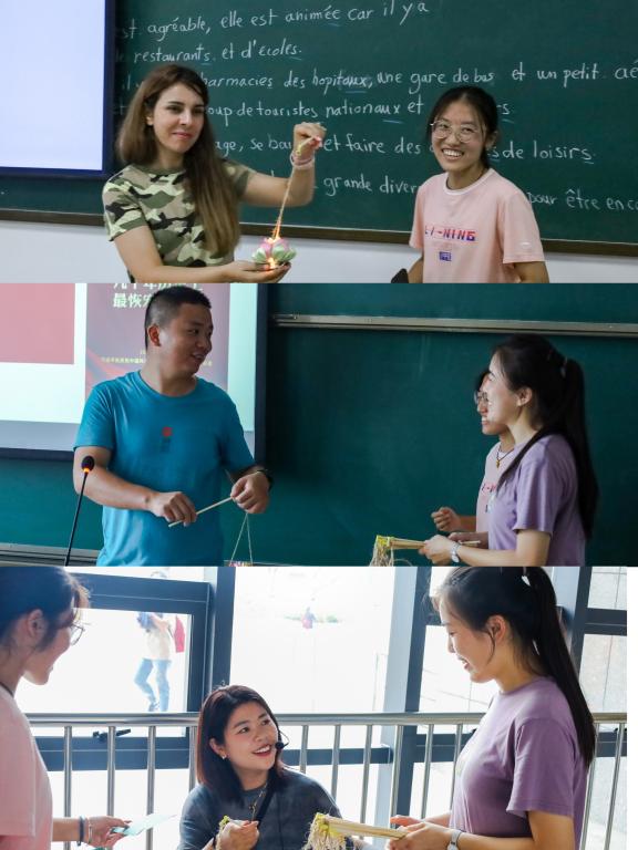 “考虑到学院有外籍教师,同时为了彰显专业特色,我们写下的祝福语兼有英语版和法语版。”此次活动的负责人、法语专业2021级的张光俊介绍,除了手作花灯外,大家还纷纷在定制的明信片上手写祝福语,并在其中加入了自己的“小心意”。“我们一起商量着在部分明信片上绘制可爱的简笔画,希望收到这些祝福语‘盲盒’的老师能够喜欢。”