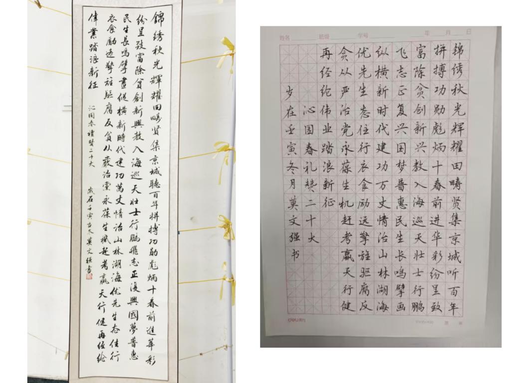 以“学习党的二十大,书卷起笔展芳华”为主题,面向学院全体学生举办“三字一画”教师技能大赛,近四百名学生参与比赛。