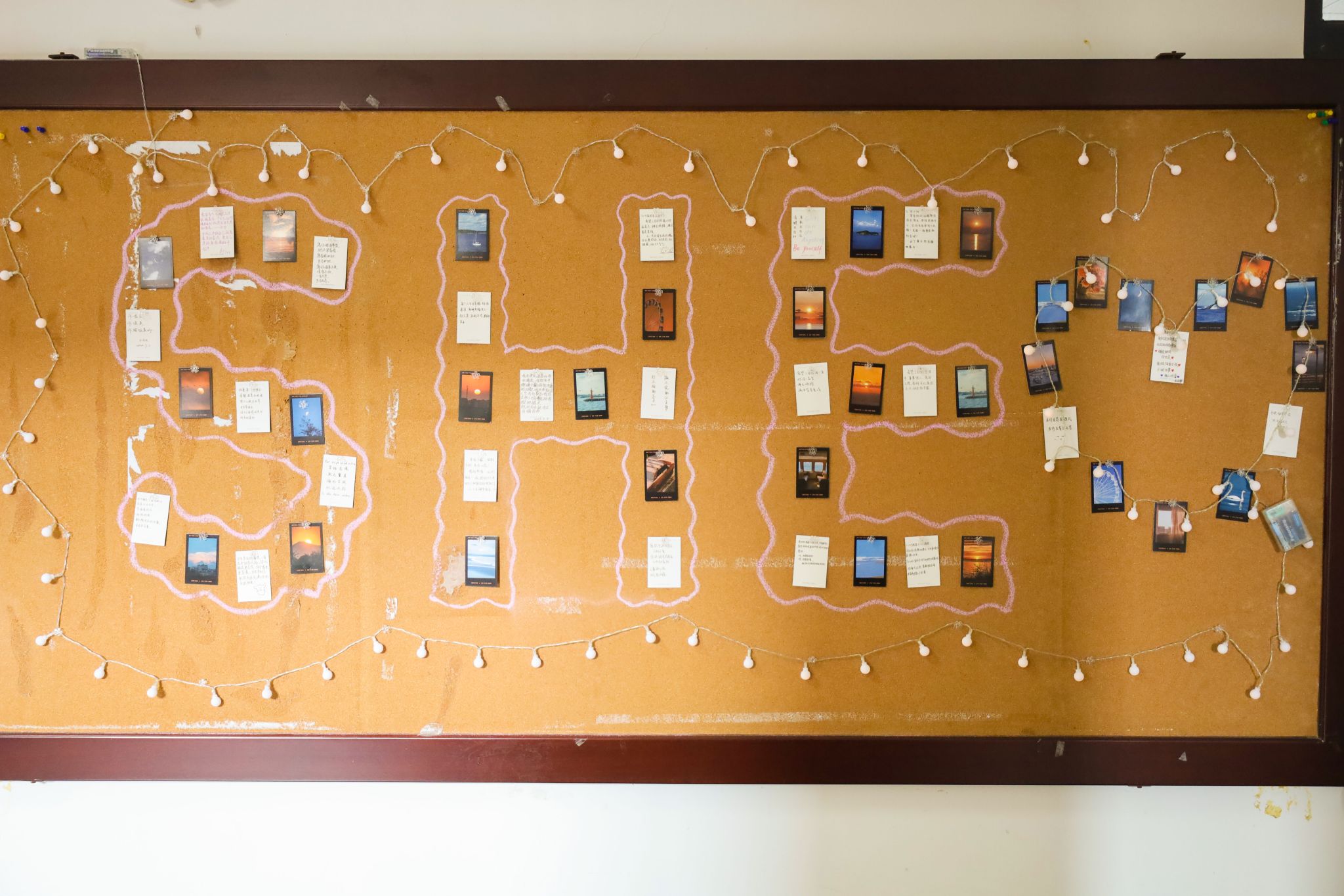 “愿每一个女孩子都清醒温柔知进退、努力上进且优秀。”“做自己就是最美的姿态!”……一周前,院学生会面向全院女生发放了明信片,收集整理后粘贴在了一楼大厅的宣传展板上。50余张精美明信片拼成了一个心形和“SHE”的字样,上面写满了女生们对自己及他人最诚挚的祝愿。