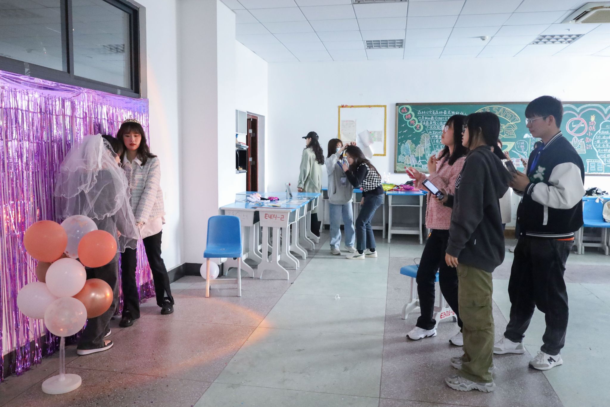 在活动开始前两个小时,工作人员就来到现场进行布置,吹气球、贴布景、摆道具。活动负责人、英语(师范)专业2021(3)班的刘悦表示,希望通过开展此次活动,让女生们大胆地表达与展现自我,发现自己的闪光点,增强自信心,也希望能够在全院营造出一种尊重女生、关爱女生的友好氛围。(撰稿:学生记者 许树群 摄影:学生记者 朱秀萍 审核:何媛君)