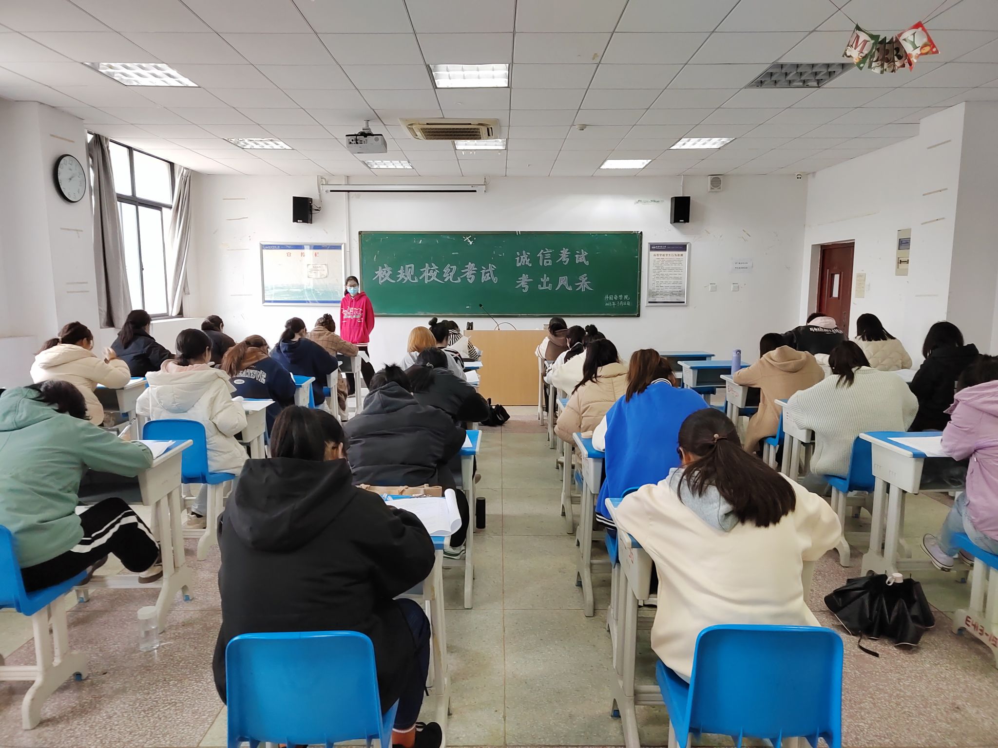 举行2022级新生校规校纪考试,2022级全体新生参加了此次考试,辅导员老师巡考,高年级学生党员、发展对象、入党积极分子负责监考和阅卷工作。