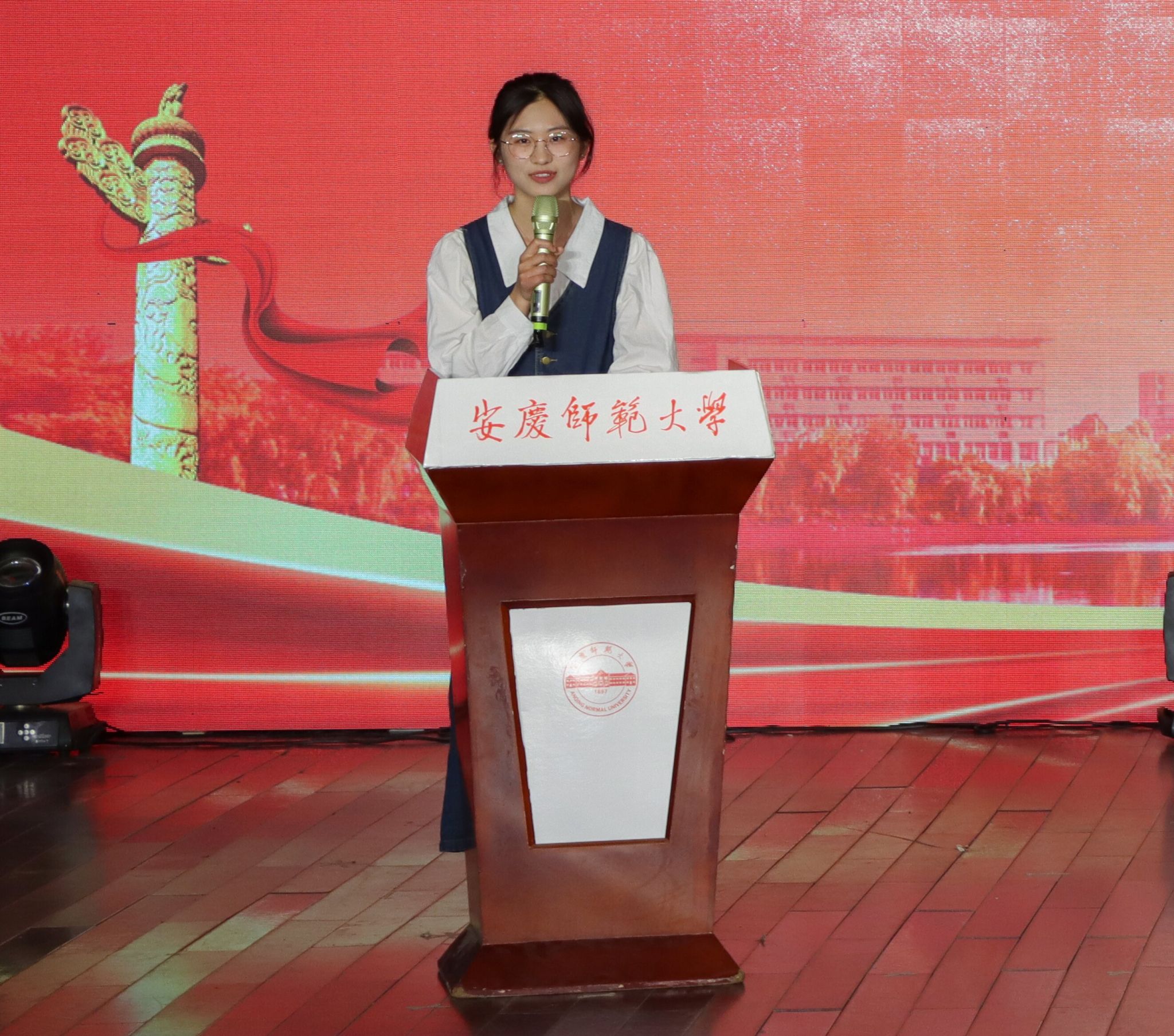 从战乱之际青年救国意识的觉醒到当下青年择业为国思想的笃定,学院主持队带来的诗歌朗诵《追梦正当时》再现了百年间我国的发展成就,讲述着学子们不变的报国心。“在这条只有进行时的赶跑路上,精神的火炬必将代代相传,精神的火焰永远熊熊闪亮!”或摇旗呐喊,或振臂高呼,9位学生青年迸发出“最强音”,号召新时代学生传承希望火炬,争做有为青年。