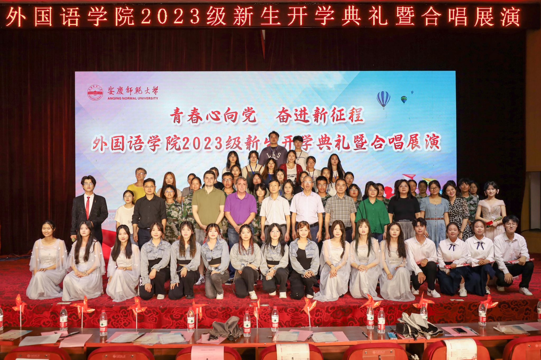 在图书馆东报告厅隆重举行2023级新生开学典礼暨“青春心向党、奋进新征程”合唱展演。学院党委书记李亦亮,院长王先荣,副院长江加宏、瞿宁霞,党委副书记何媛君及教师代表出席,2023级全体本硕新生共400余人参加了典礼。