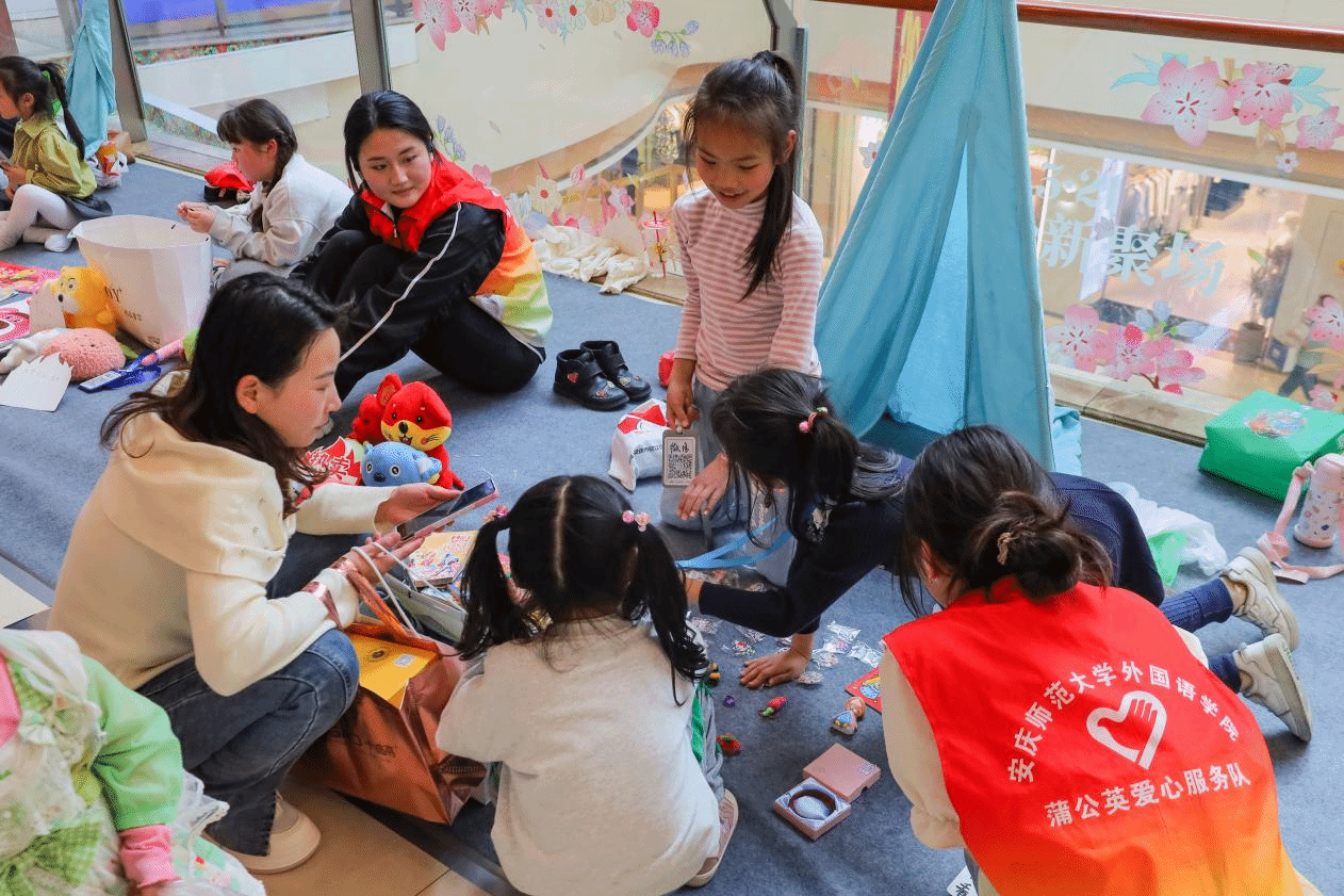的学子携手安庆市儿童之家社区儿童在街头摆摊设点,共同开启了一场主题儿童义卖之旅。